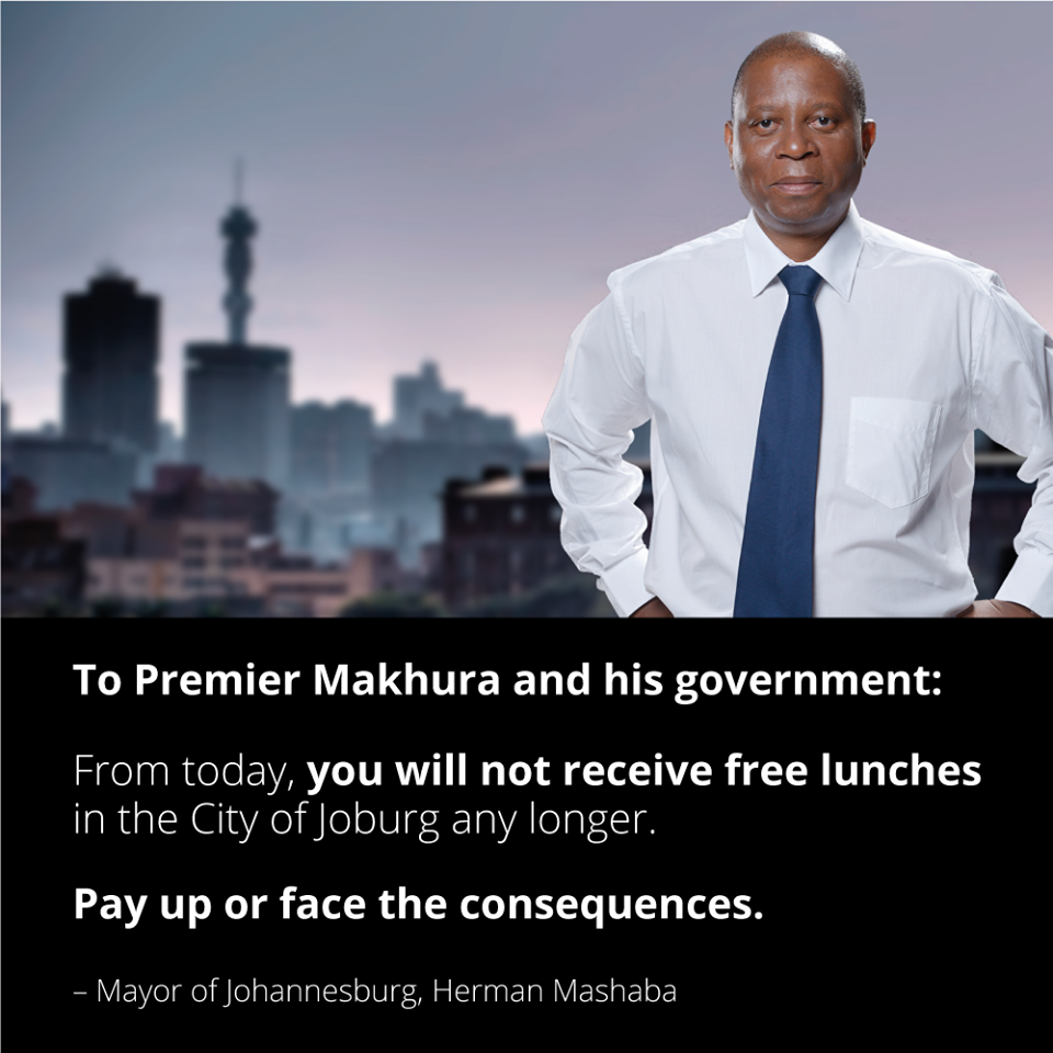 Herman Mashaba has today revealed that Gauteng government departments owe the City of Joburg R259 million in outstanding rates.