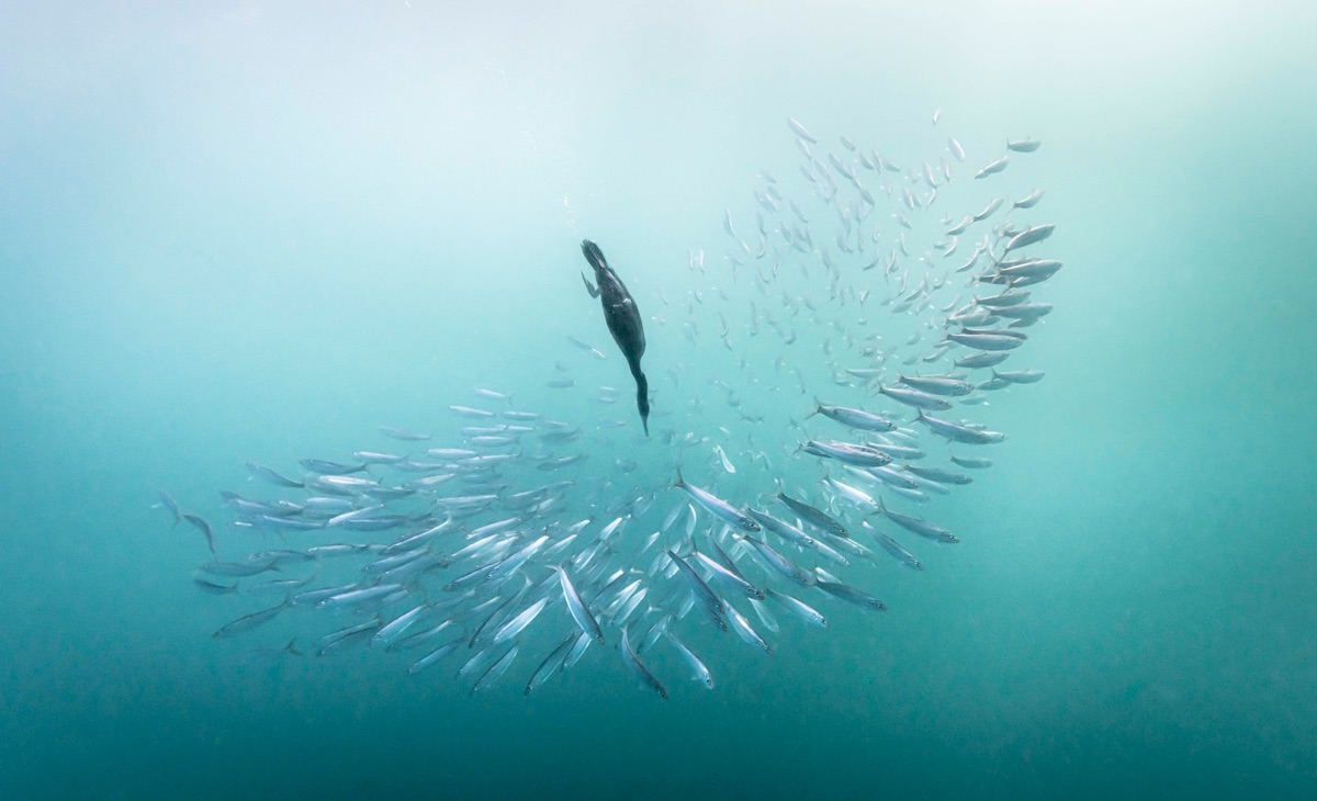 The overall Grand Prize of this year’s BirdLife South Africa Photography Competition went to Beverly Pickford. Her underwater photo of a Cape Cormorant chasing sardines during the annual sardine run is beautiful. The bird itself is regionally Endangered, so her win also raises awareness.