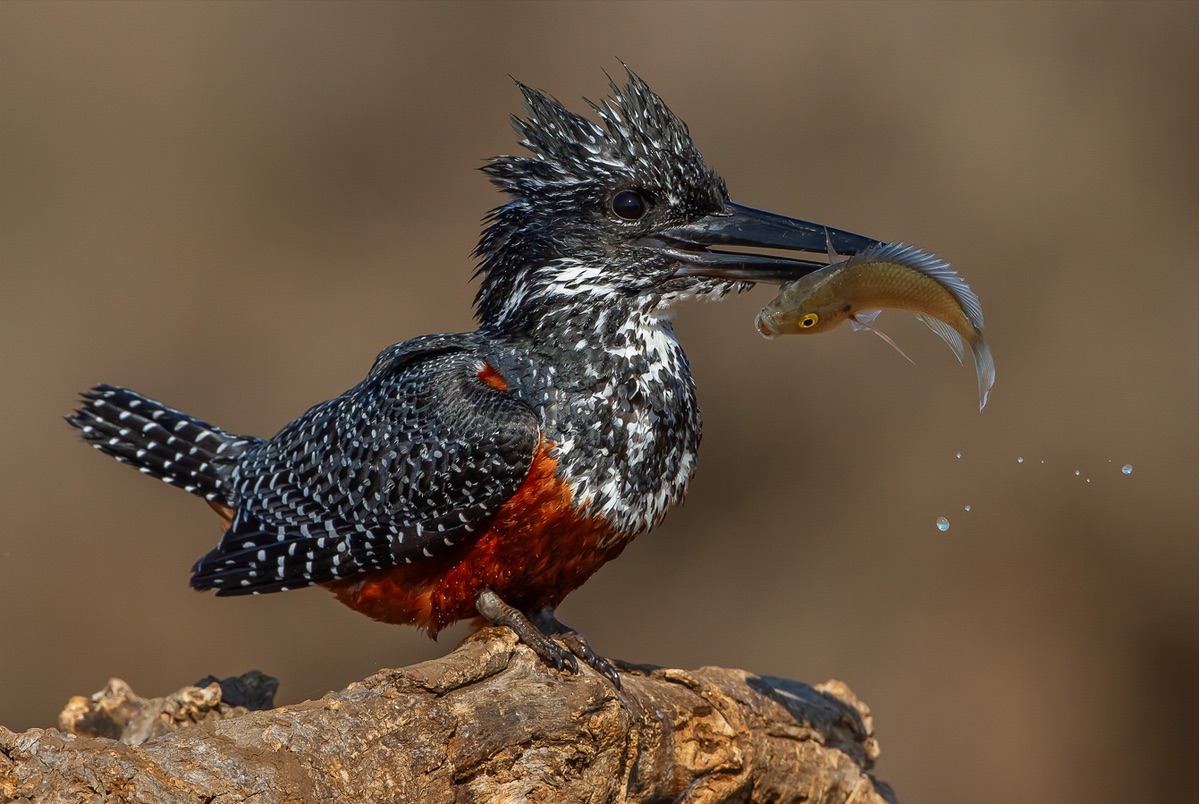 Johan Kloppers won the Portrait category with a Giant Kingfisher in perfect clarity, tilapia clutched in its beak. A striking portrait of a hunter at work.