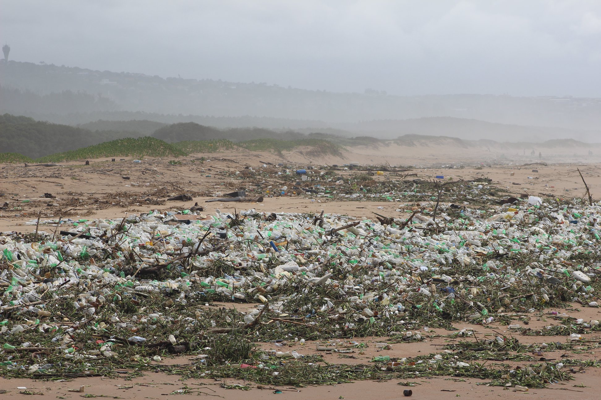 Durban, South Africa – Flash flooding hit parts of Durban over the weekend, lifting trash and littering the beach with it. The horrific flood claimed lives and left the beach covered in plastic bottles.