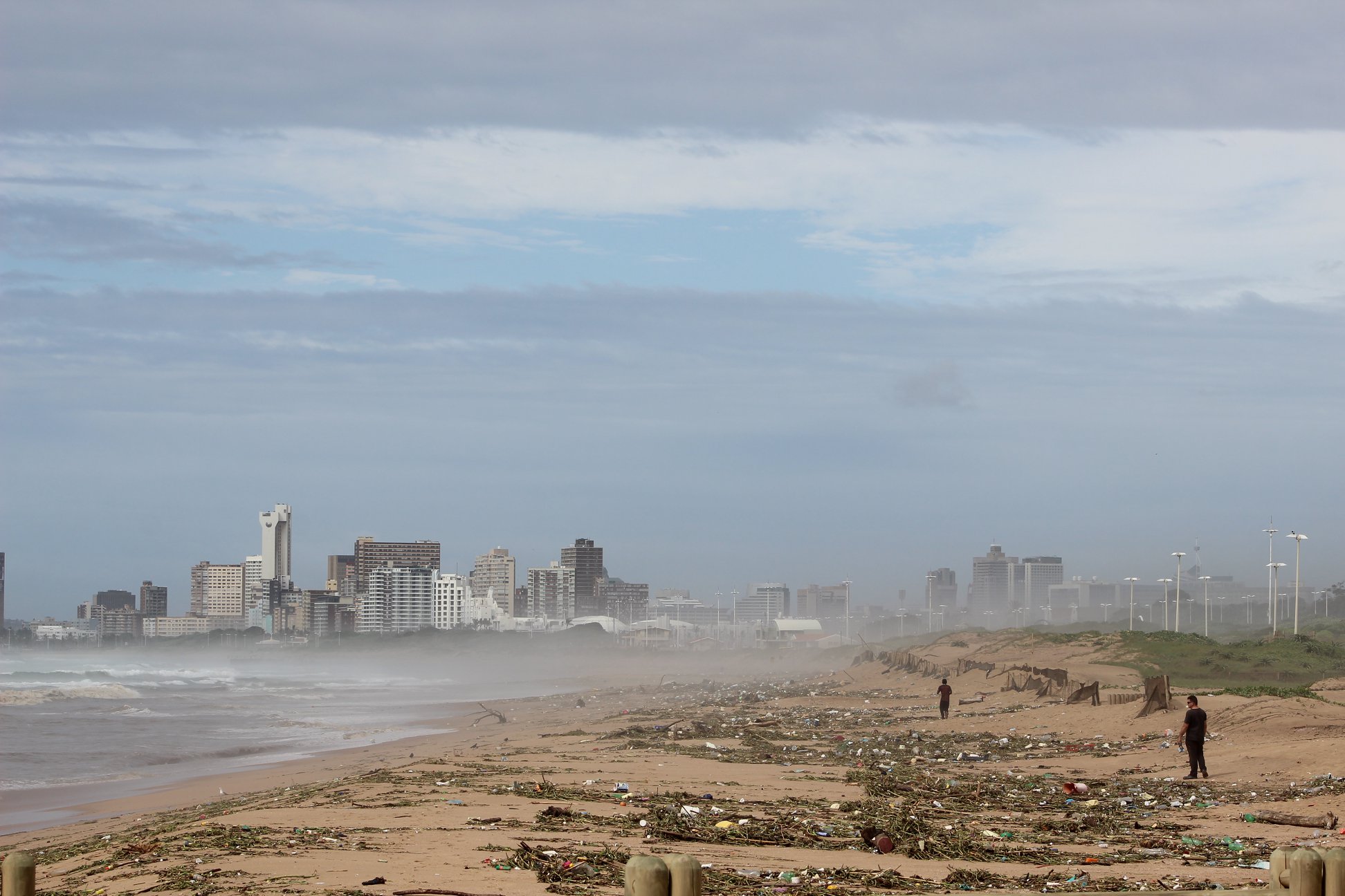 Durban was hit by a storm that caused disastrous flooding and left the beach littered with bottles, but the community are coming together to clean it all up.