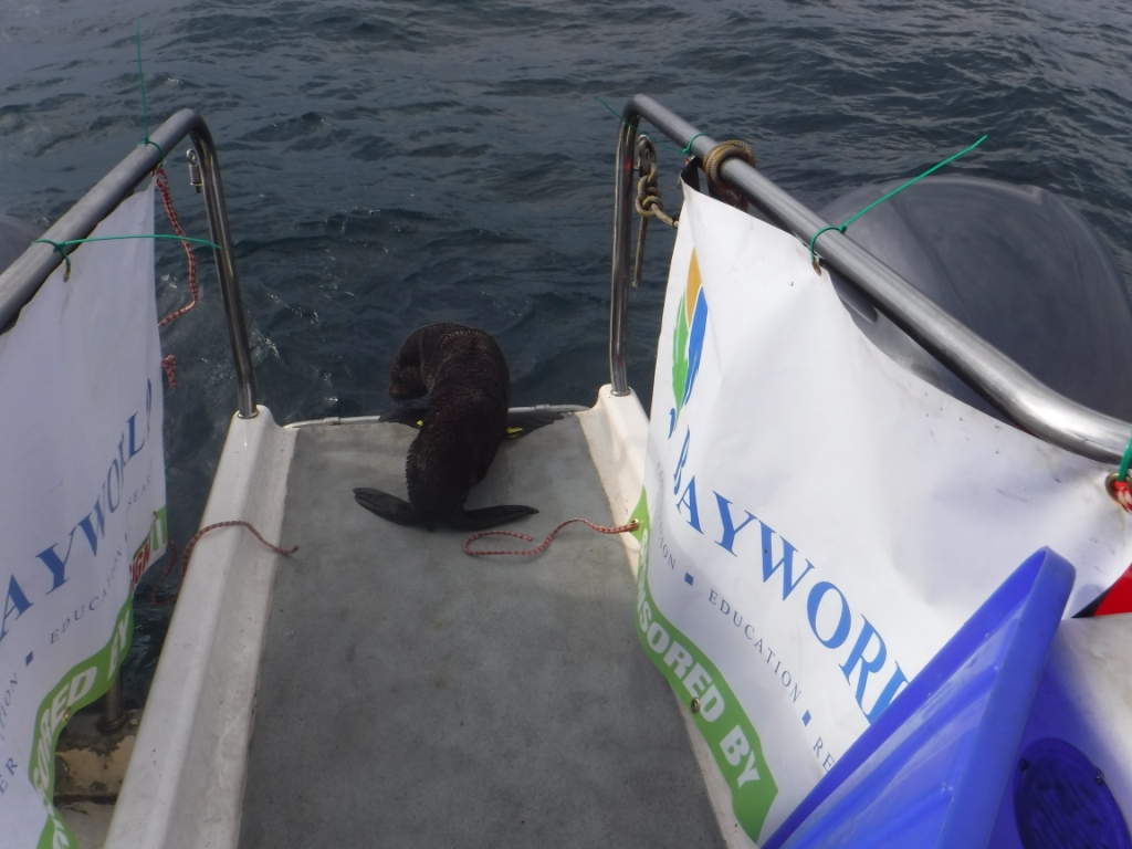 The seals and staff were then all loaded onto a small research vessel and after a quick safety briefing and sea sickness warning were on their way. After about an hour and a half of being at sea the skipper stopped and informed the crew that the seas were too rough for such an endeavour and we would have to return to ensure everyone’s safety.