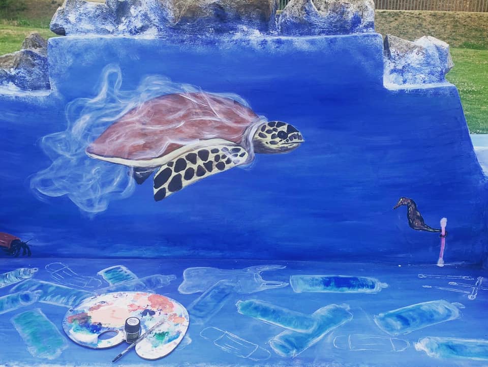 Once the bench was completed, an artist was invited in to paint the bench in honour of saving the ocean. What many people do not realise, is that ocean pollution starts just as much inland as it does on the beach. Litter is carried by the complex river systems and eventually ends up being washed into the ocean.