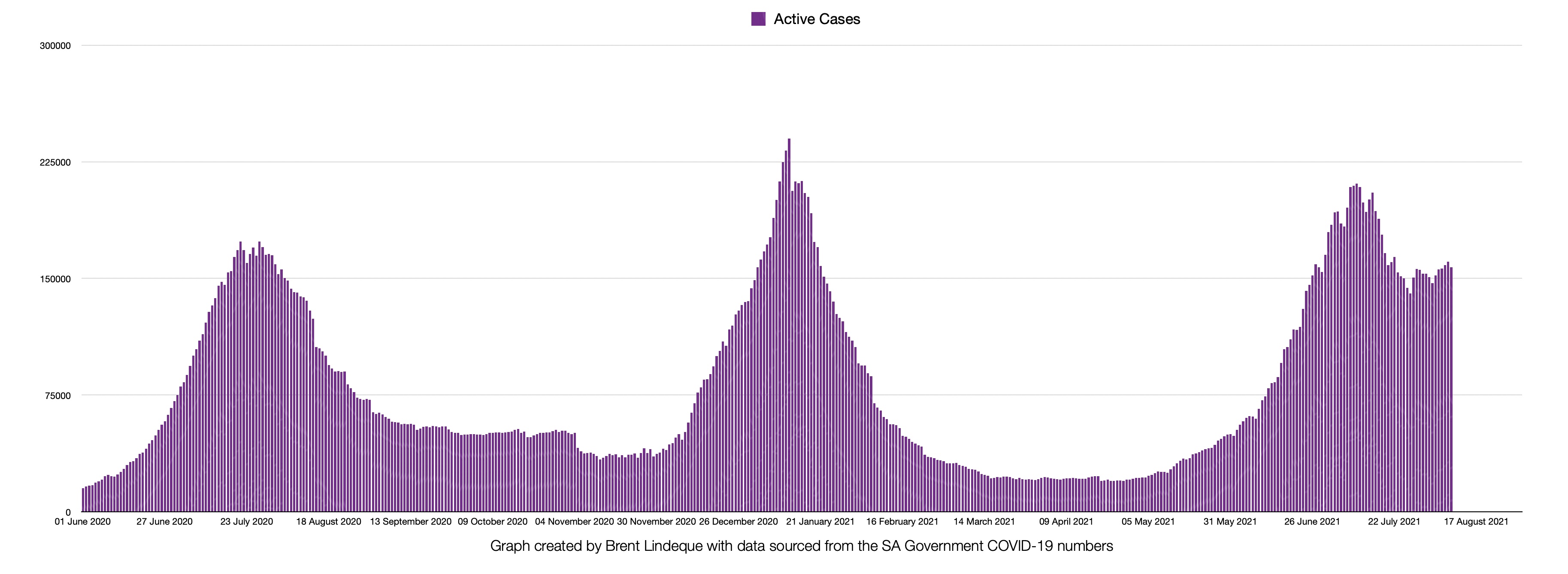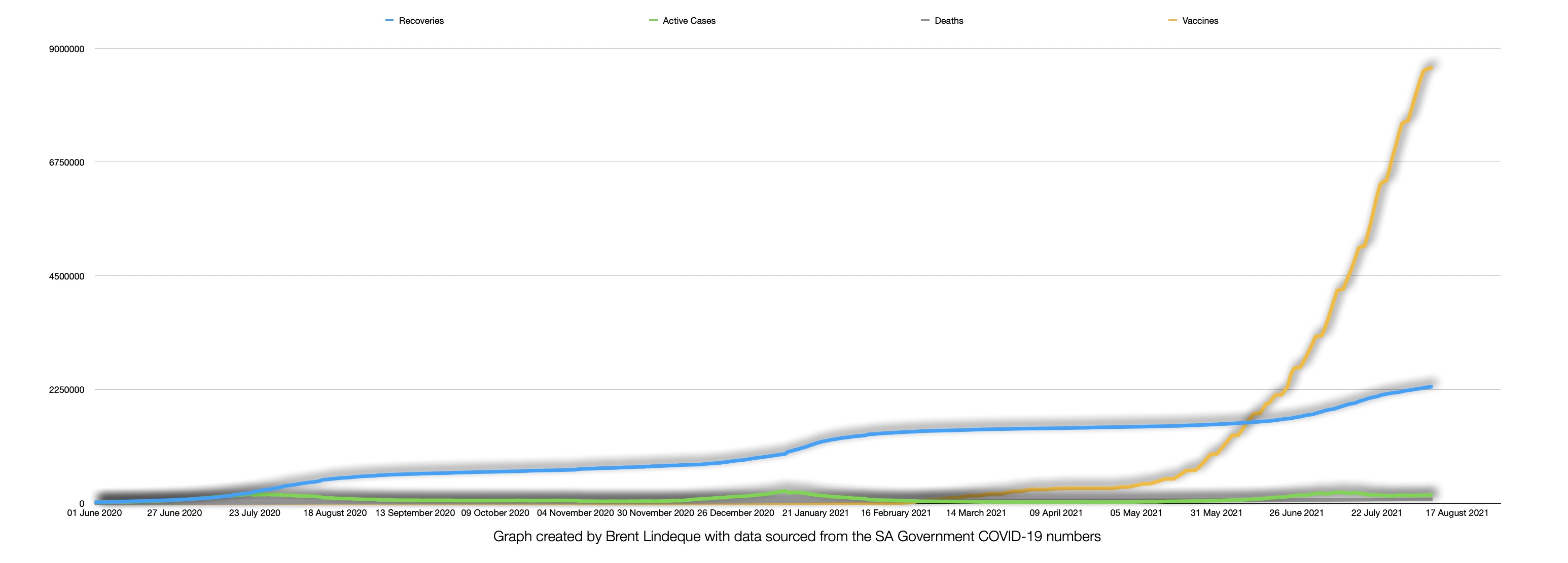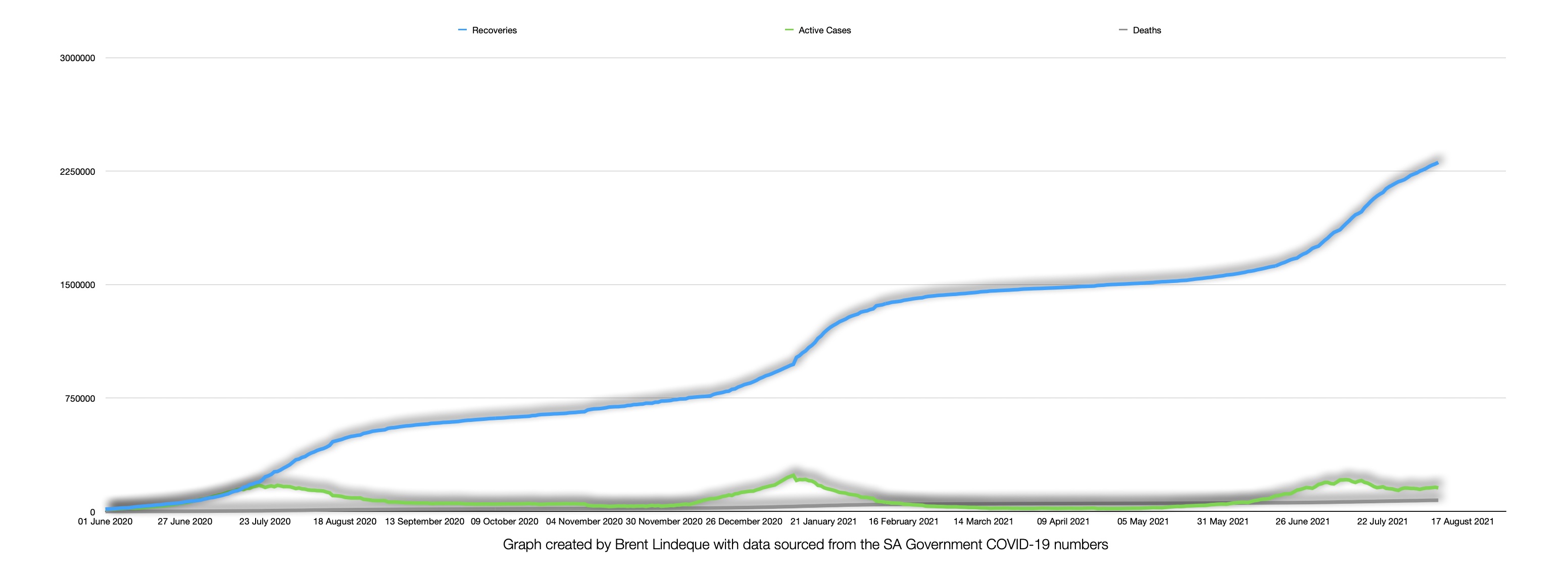 We have developed a series of graphs to try to show the current COVID-19 climate in South Africa.