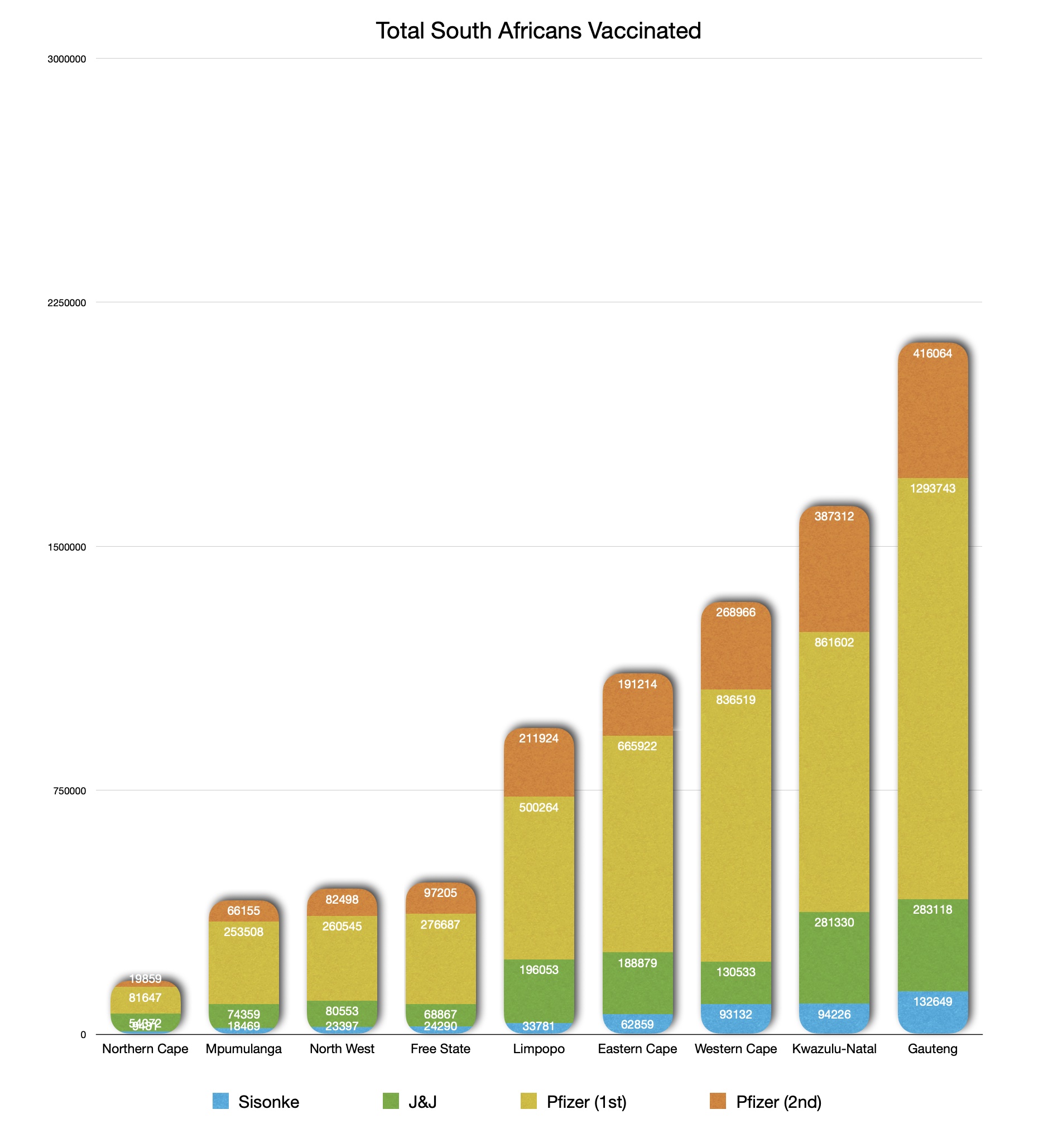 The country started the vaccination roll-out on the 18th of February 2021 and to date, 8,621,932 vaccines have been administered, with 3,591,495 South Africans now completely vaccinated.