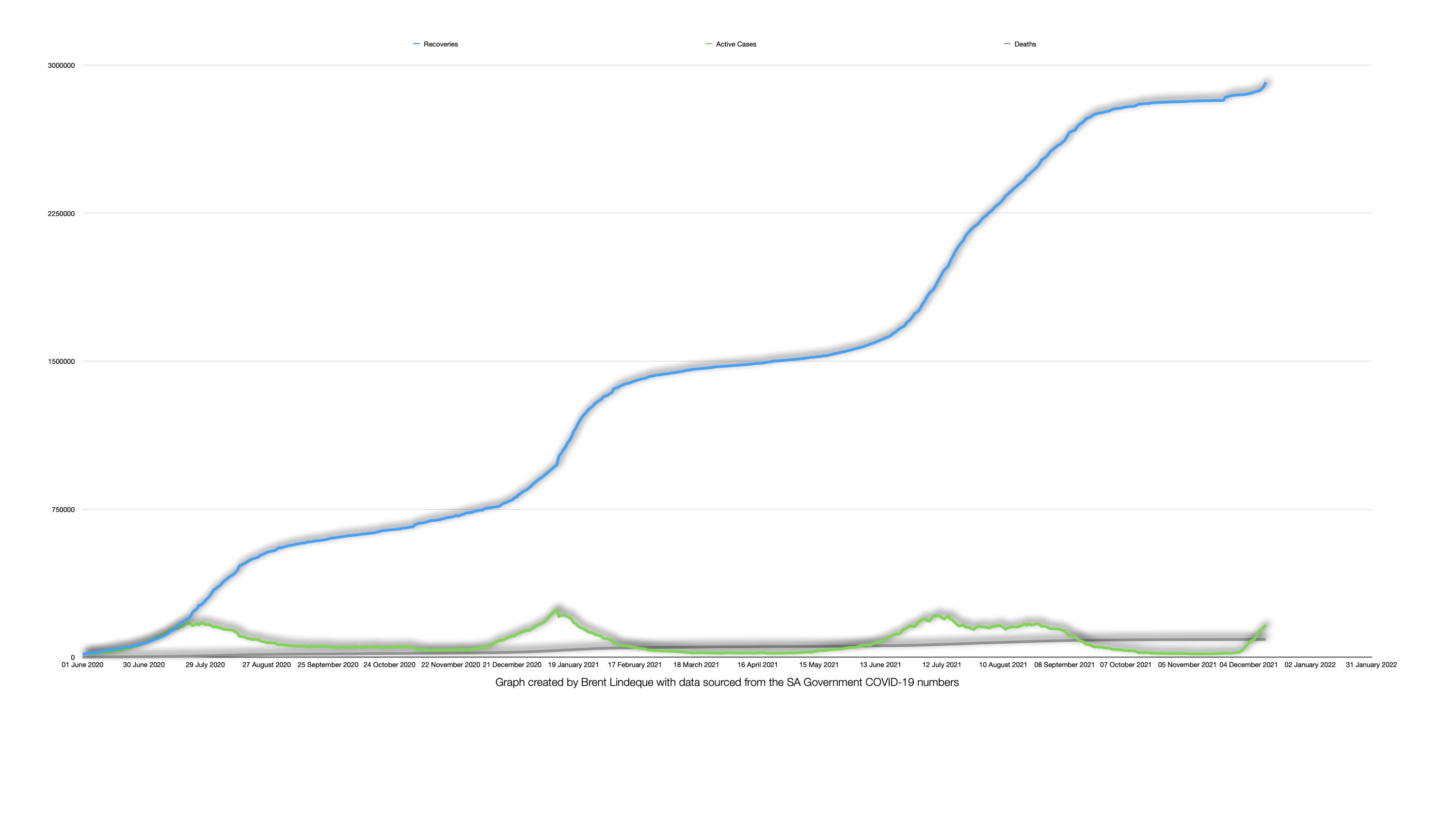 South Africa (12 December 2021) – In the last 24 hours, South Africa has seen an increase of 18,035 new COVID-19 infections, which brings our active cases to 164,128 and our recoveries to 2,913,232. We currently have a 96,5% recovery rate in closed cases and are making our way to even more recoveries every day.