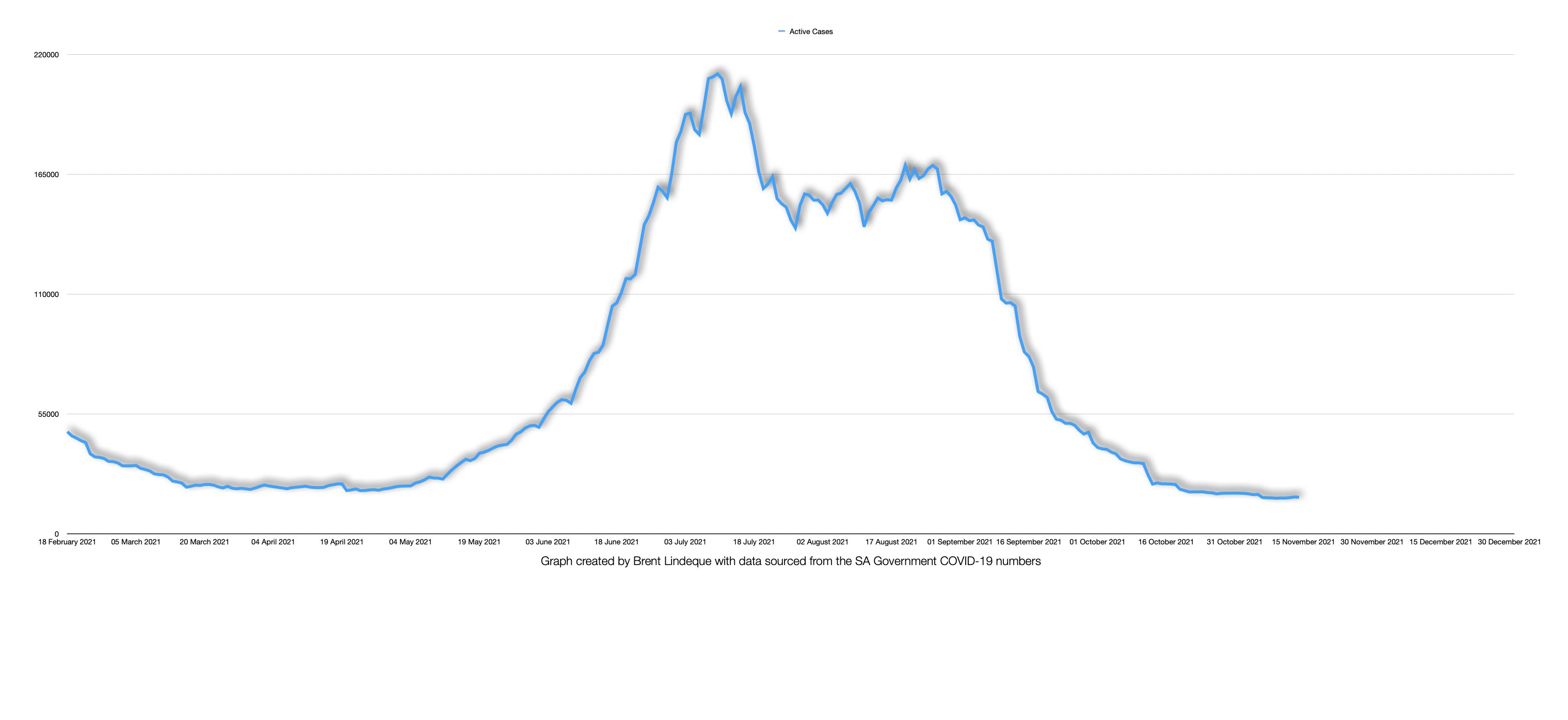 South Africa (12 November 2021) – In the last 24 hours, South Africa has seen an increase of 262 new COVID-19 infections, which brings our active cases to 16,767 and our recoveries to 2,819,688. We currently have a 96,5% recovery rate in closed cases and are making our way to even more recoveries every day.