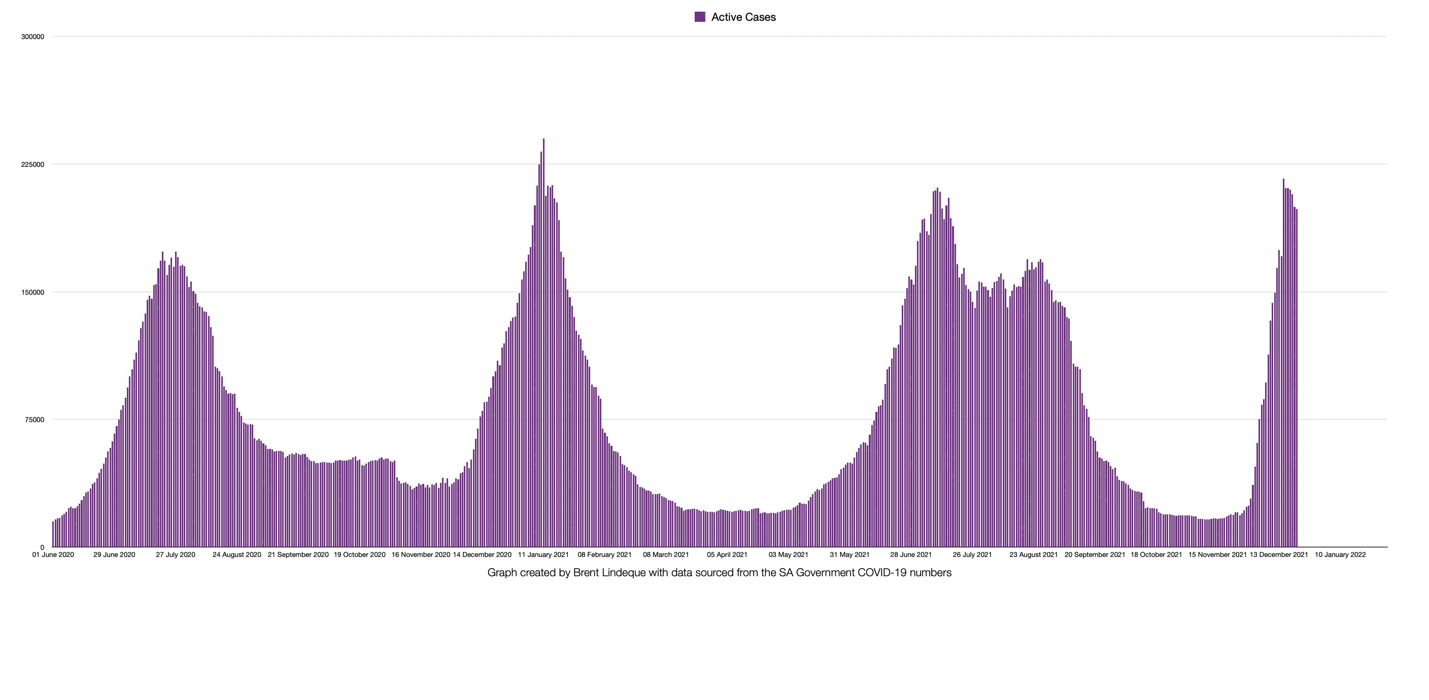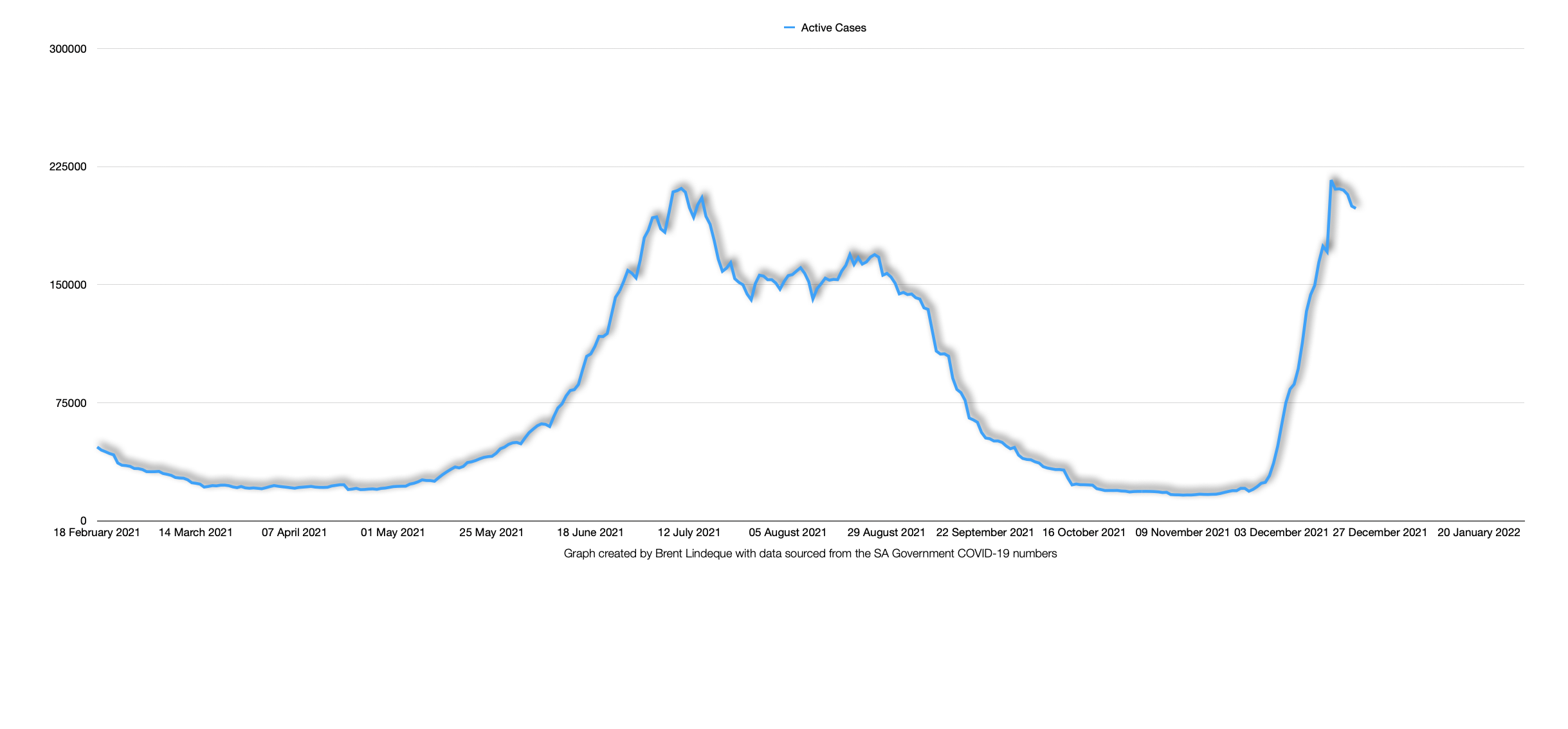 South Africa (21 December 2021) – In the last 24 hours, South Africa has seen an increase of 15,424 new COVID-19 infections, which brings our active cases to 198,426 and our recoveries to 3,043,094. We currently have a 96,5% recovery rate in closed cases and are making our way to even more recoveries every day.