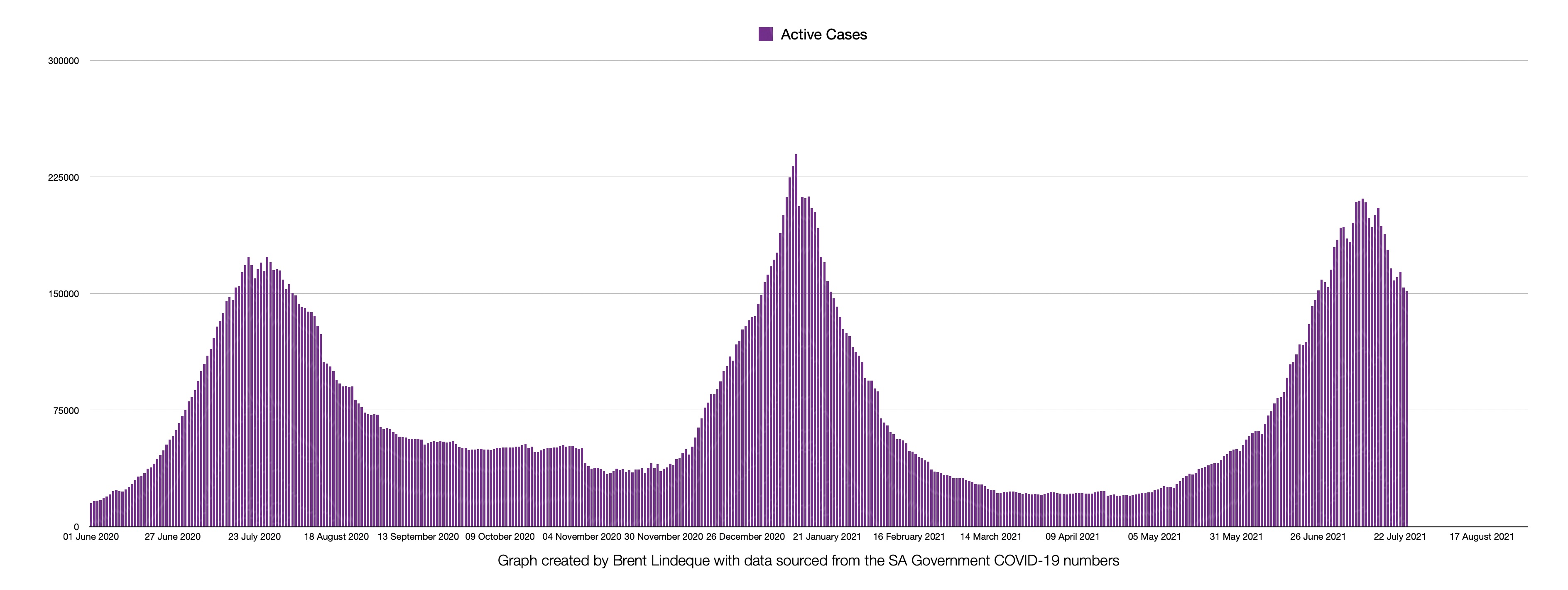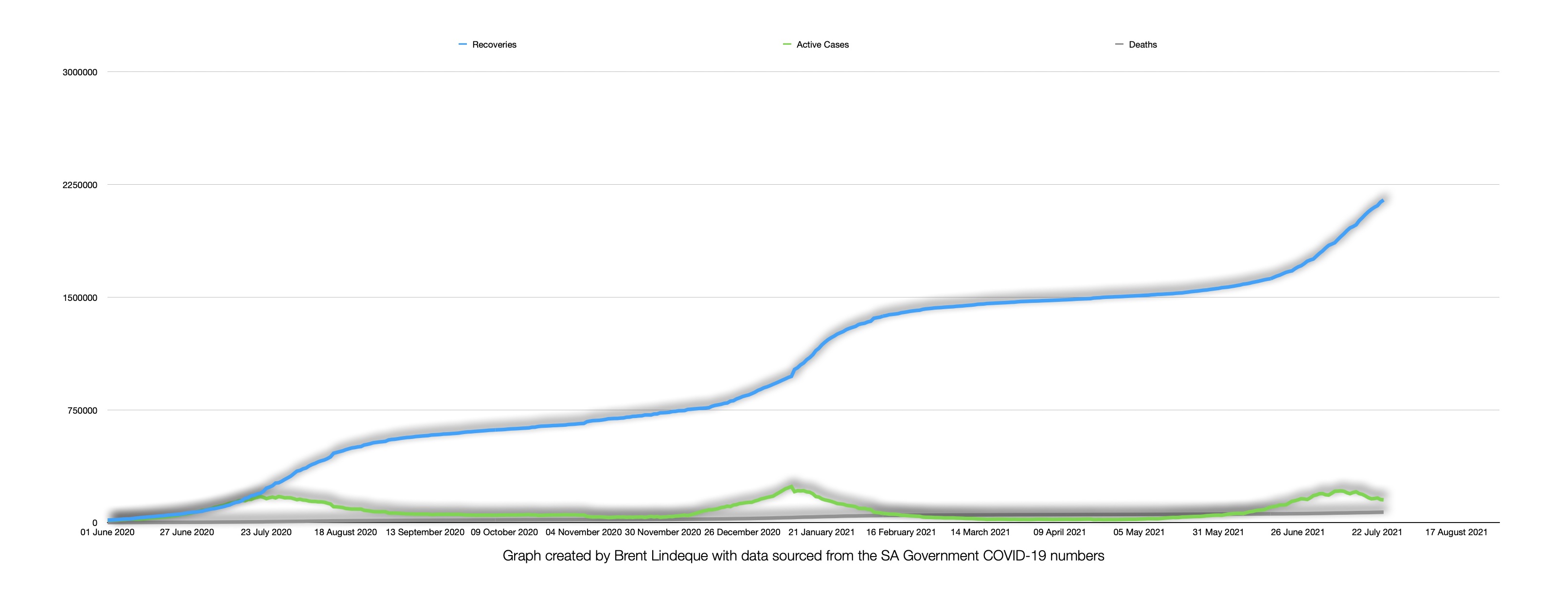 We have developed a series of graphs to try to show the current COVID-19 climate in South Africa.