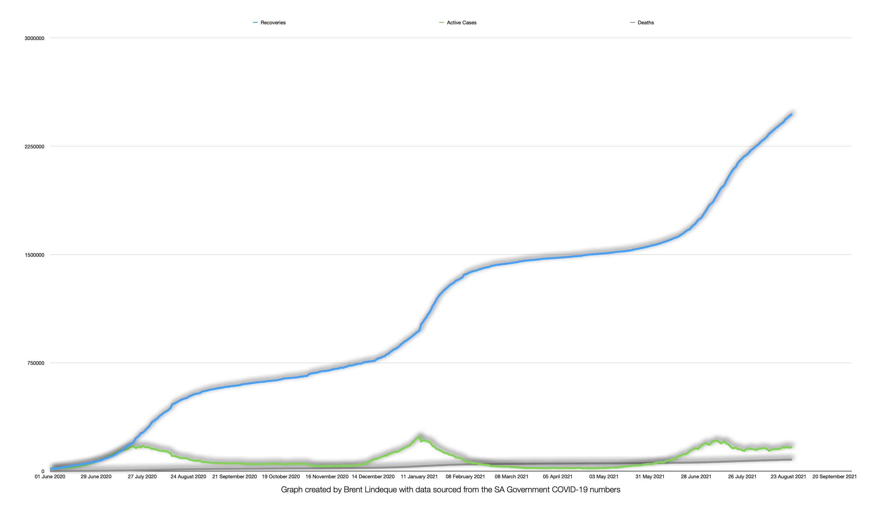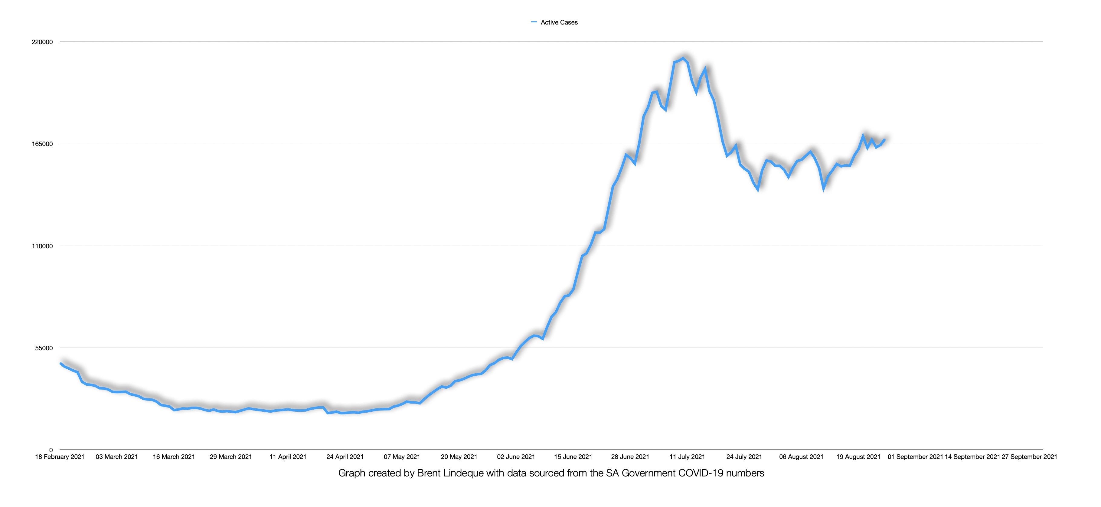 We have developed a series of graphs to try to show the current COVID-19 climate in South Africa.