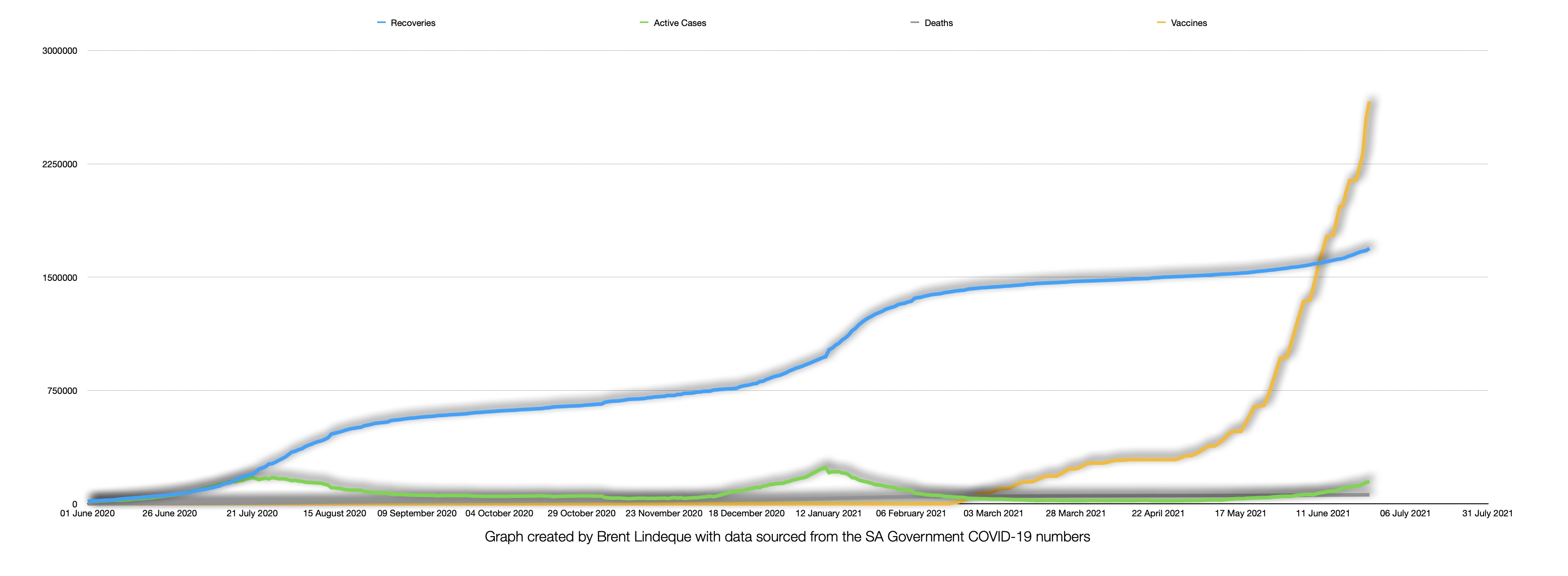 We have developed a series of graphs to try to show the current COVID-19 climate in South Africa.