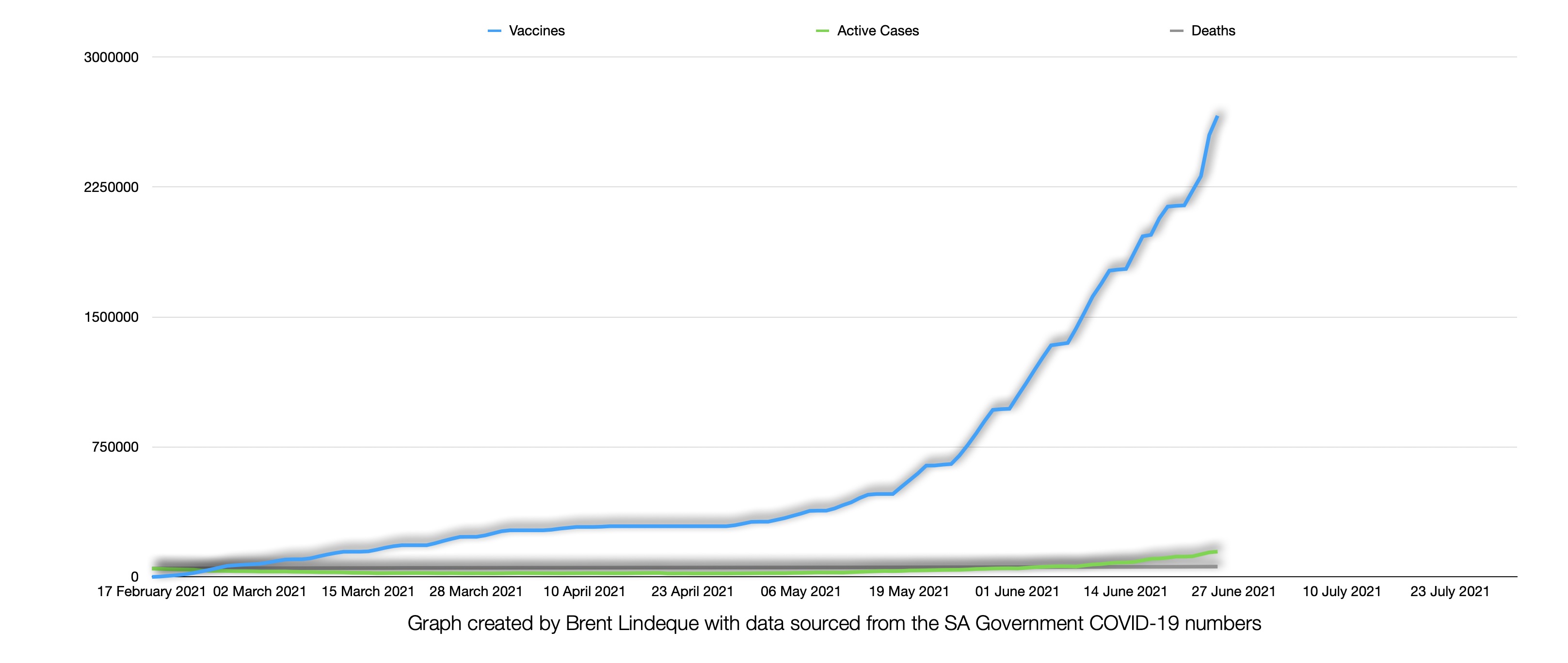 The first being the “total” cases since the 1st of June 2020, the second being the “active cases” in the same timeframe, and the third is a snapshot since the country started vaccinations.