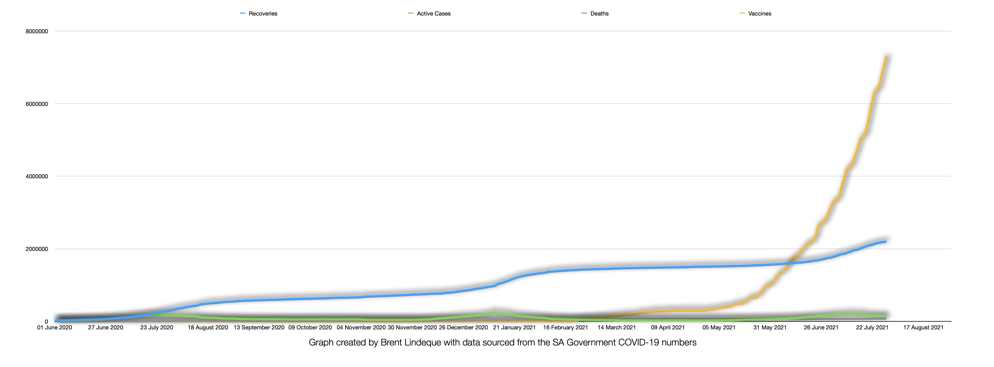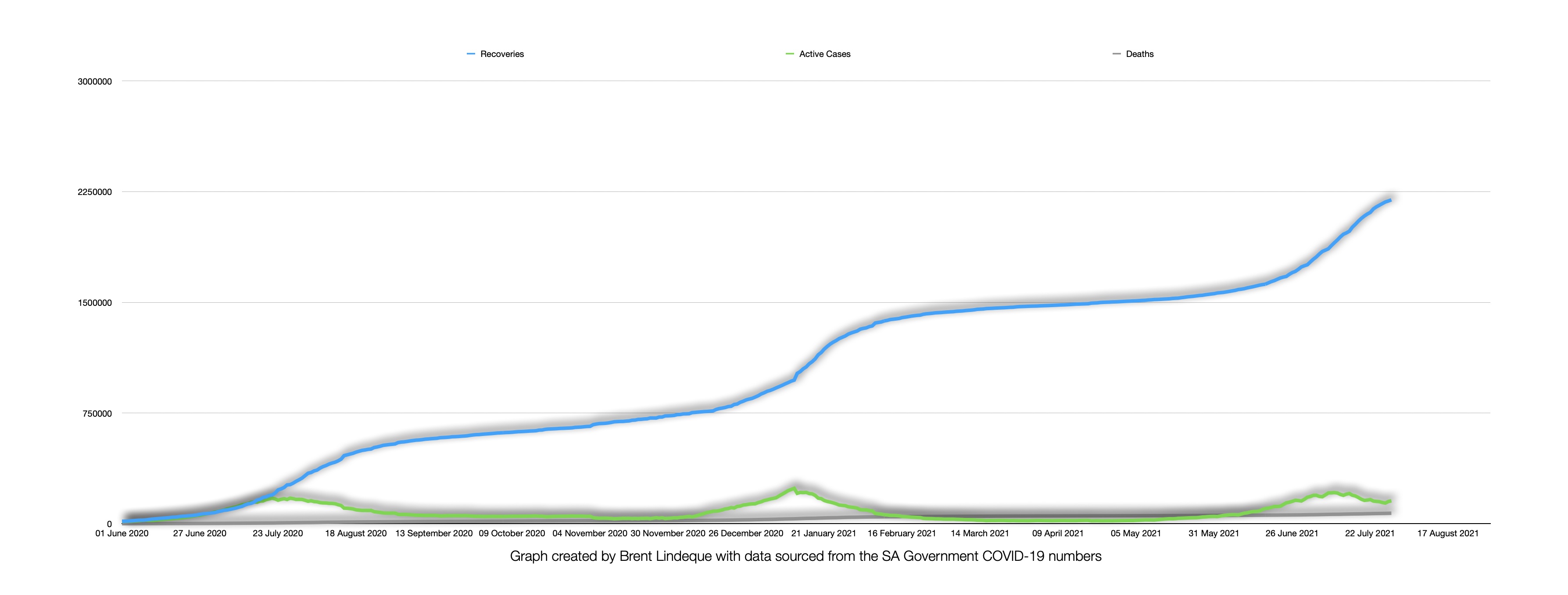 We have developed a series of graphs to try to show the current COVID-19 climate in South Africa.