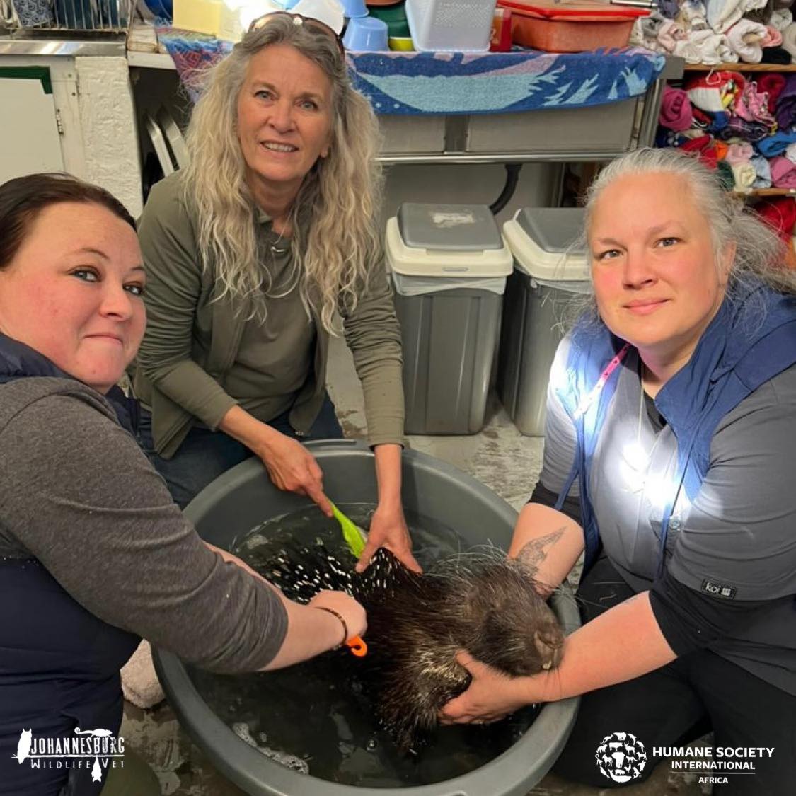 Imagine bathing a porcupine? The Johannesburg Wildlife Veterinary Hospital team actually did it after a young adult came in coated in oil.