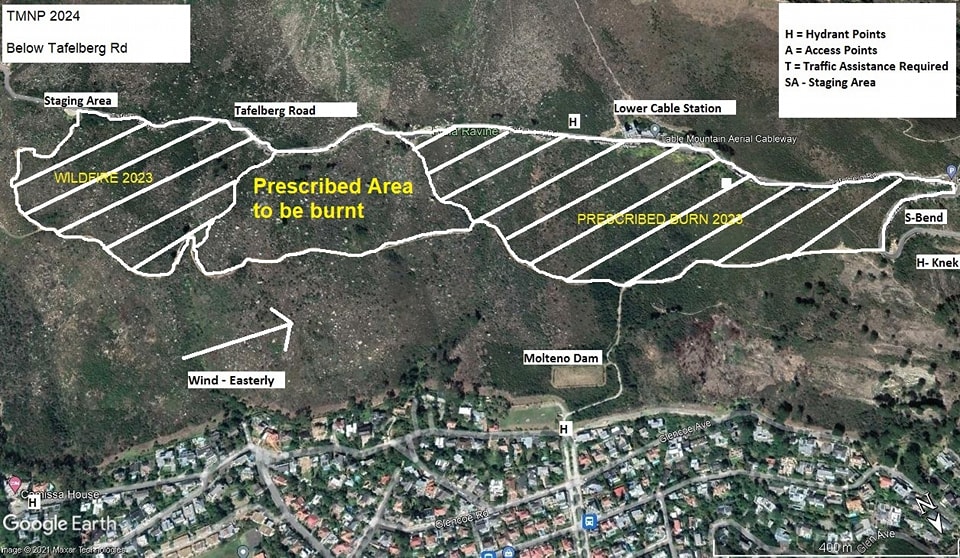 This burn was done between an area that was subject to a wildfire in 2023 and the March 2023 prescribed burn area. Now the area below Tafelberg Road and the Cable Station has been burned and will begin to rejuvenate and regrow over the next year.