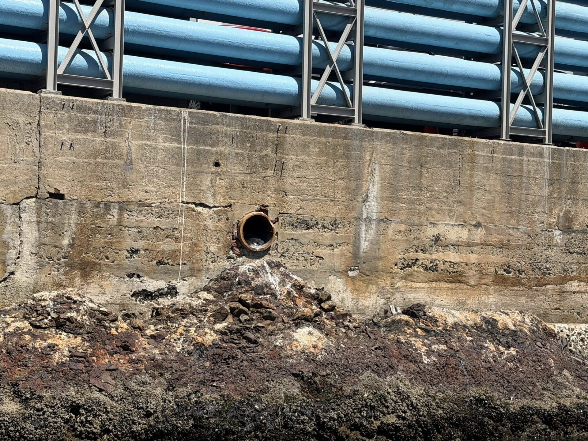 They carefully accessed the pipe over the water and guided the penguin safely towards them until it was finally out.