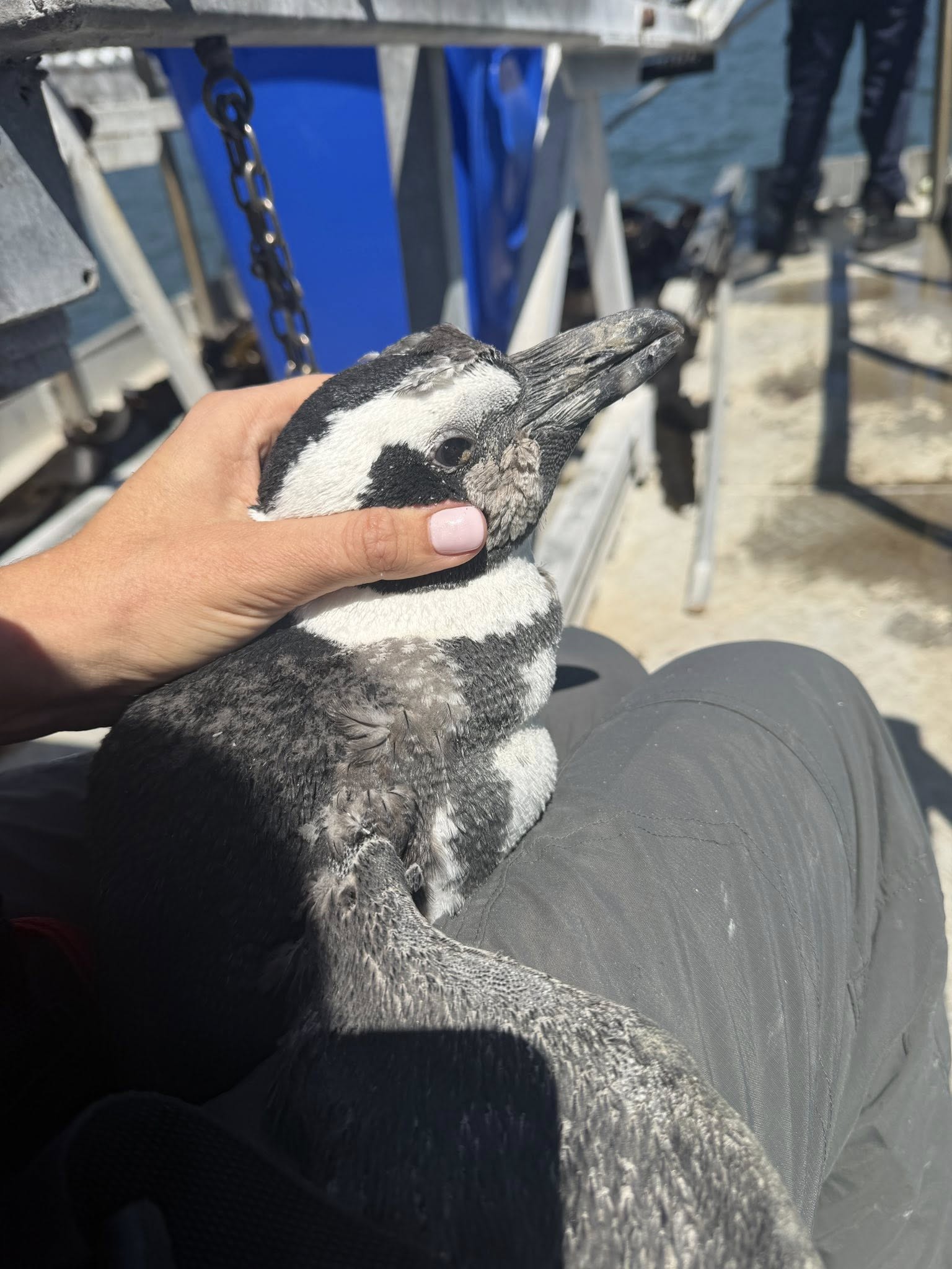 “Once in hand, we returned by sweeper boat, placing the penguin safely into a rescue box, for the SANCCOB driver to come through to collect,” Martine explains.