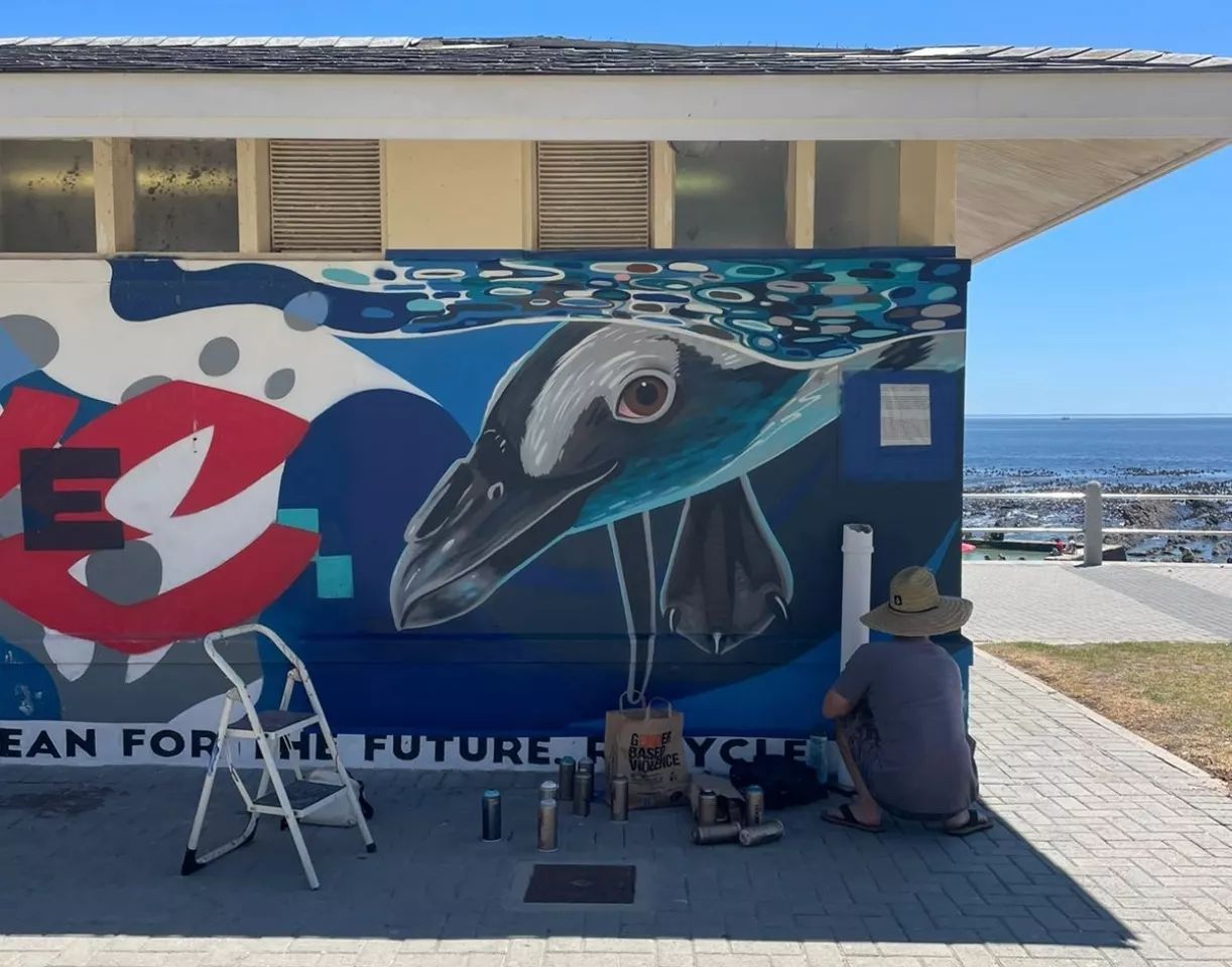“For some time, I have been keen to paint another penguin mural to create awareness for this special creature. I knew they were very endangered and have known this for some time. I have just seen that today, the IUCN has listed these beautiful birds as CRITICALLY endangered,” Giffy shared.