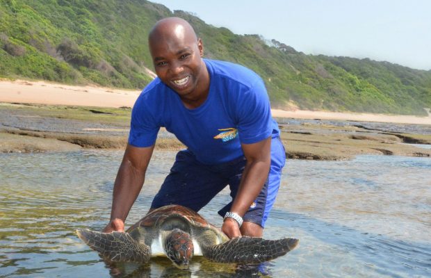 Recently, a young female Green Turtle (Cheloniamydas) was released into the sea near Sodwana Bay (Isimangaliso Wetlend Park) by uShaka Sea World Aquarist Lindani Khwela