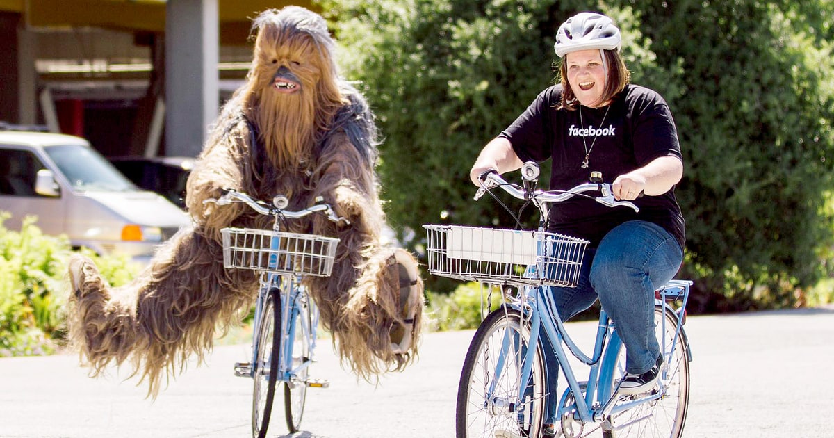 A series of photos showed Payne hanging around the Facebook campus with someone in a Chewbacca costume, doing all the fun things you would want to do with Chewie: biking, drinking coffee, posing next to a Facebook sign.