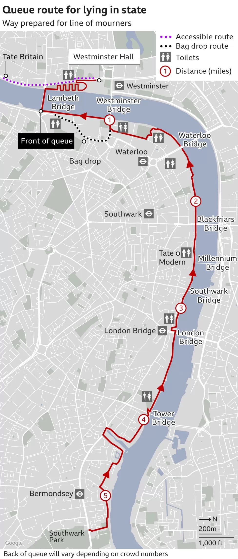 Just to be clear: I don’t mean the purpose of the queue. I don’t mean the outpouring of emotion or collective gried or the event at the end and around the queue or the people in the queue. I mean, literally, the queue. The queue itself. It’s like something from Douglas Adams.