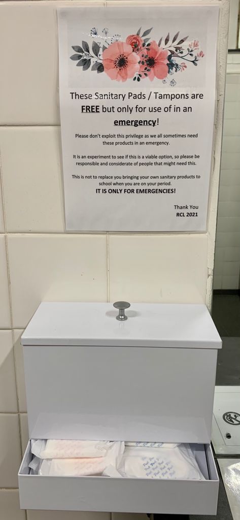 “Earlier this year, the newly elected Camps Bay High School RCL decided to try an experiment in the female and gender-neutral bathrooms at school. The team placed baskets with free sanitary products available to all those in need. This was incredibly well received by the learners at our school and based on this, they launched an internal funding drive with parents and guardians of learners at the school so that the project could be sustained in the long term.”