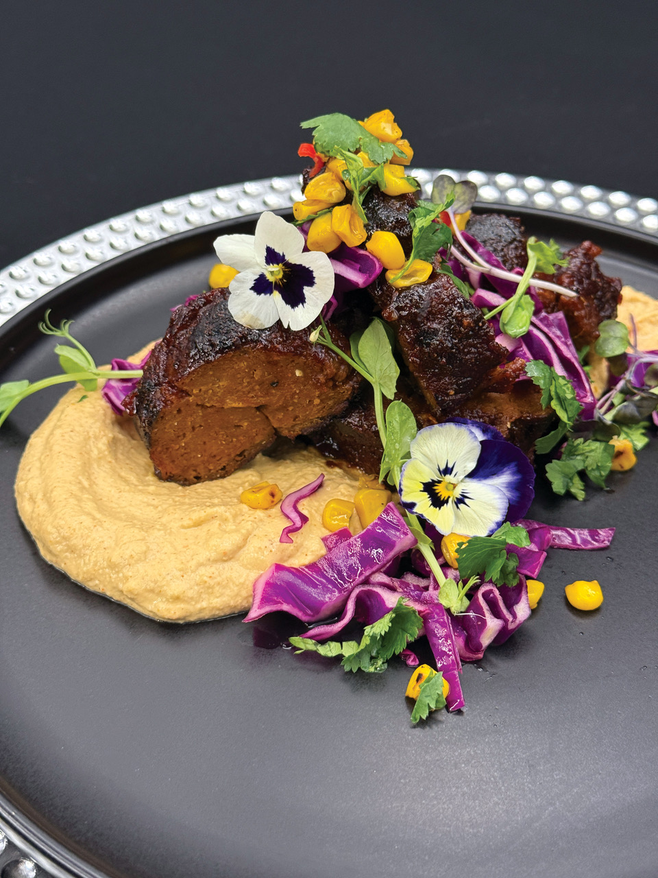 “When I transitioned in 2016 after a profound spiritual awakening, everything shifted. Removing animal products forced me to rethink texture, structure, depth and umami. It became a delicious challenge. What began as an ethical decision evolved into a culinary pursuit. I trained in my own kitchen through relentless testing, reading, experimenting and refusing to serve anything that did not make people close their eyes on the first bite.” she says.