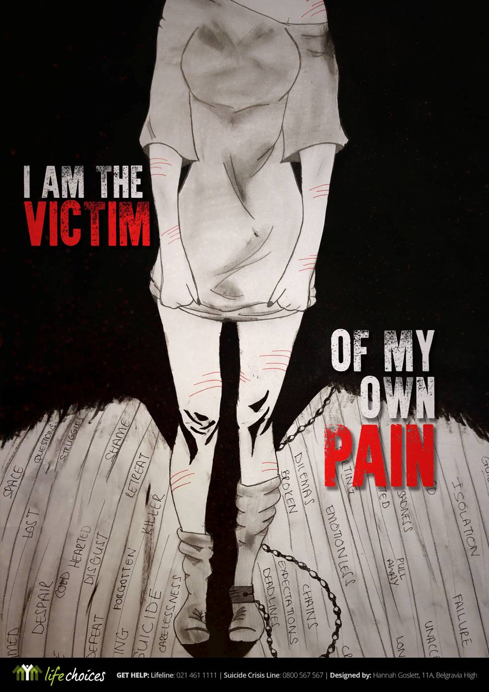Salesian Life Choices invited pupils to design posters that depict aspects of depression as part of the Health4Life initiative. The winning poster, designed by Hannah Goslett of Belgravia High School, has a powerful message: The words ‘I am the victim of my own pain’ are illustrated by a stark black, red and white image of a girl enchained by her negative emotions.