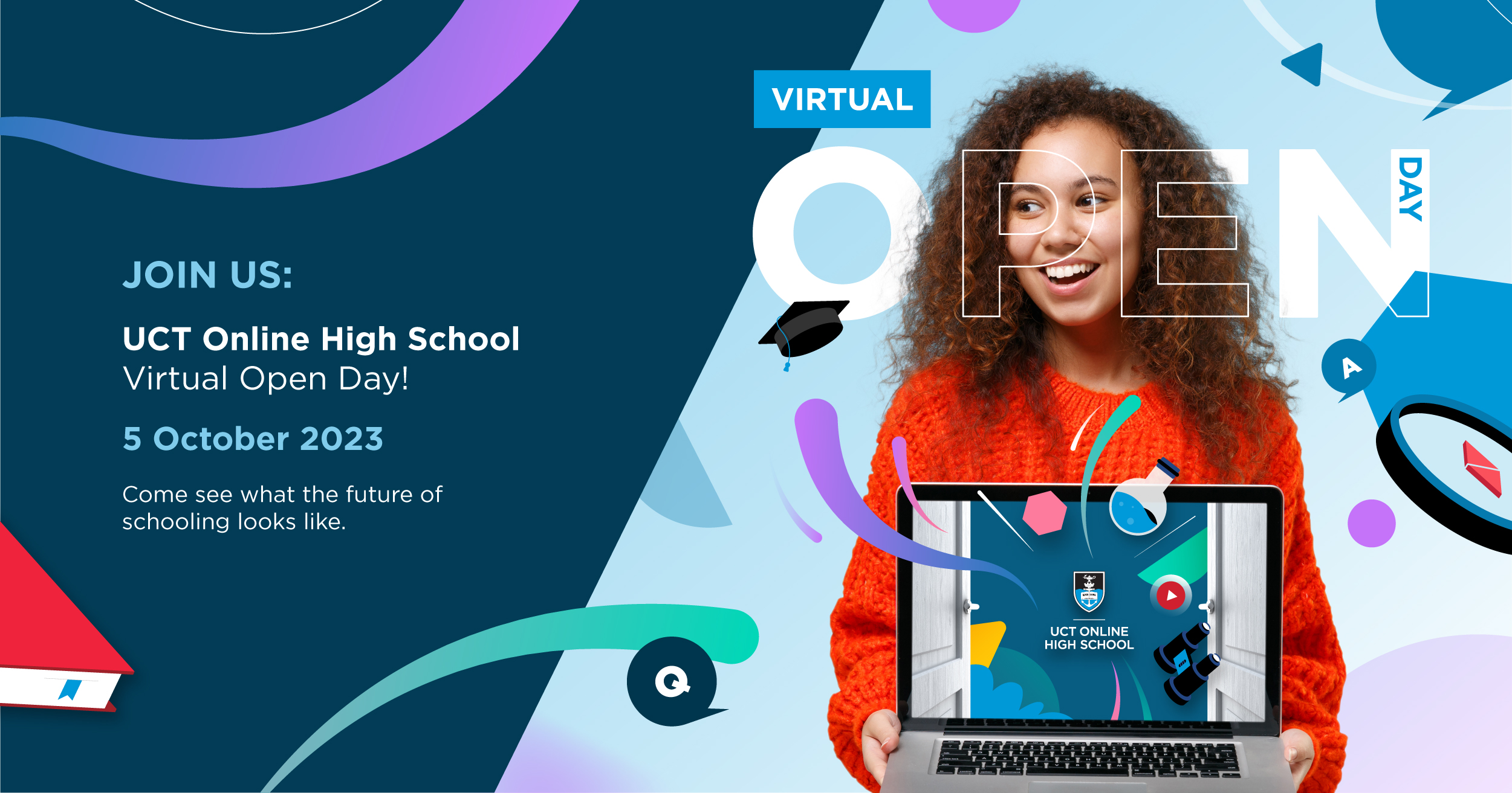 Join them on 5 October 2023 for a sneak peek into UCT Online High School. Explore the dynamic world of online education, connect with their educators, and envision your future with them. Register here to get more information: https://uctonlinehighschool.pro.typeform.com/open-day-2023