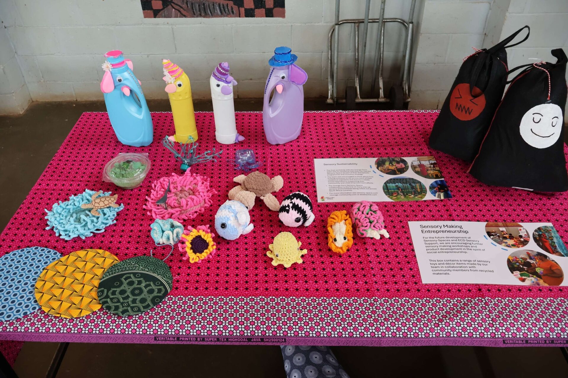 The organisation’s Arekopaneng Centre in Orange Farm recently developed and opened doors to a fully equipped therapeutic sensory facility. Built from a repurposed shipping container and incorporating recycled materials, this space was created with the community, not just for it. Parents, caregivers, and community members helped bring it to life, turning everyday materials into something meaningful!