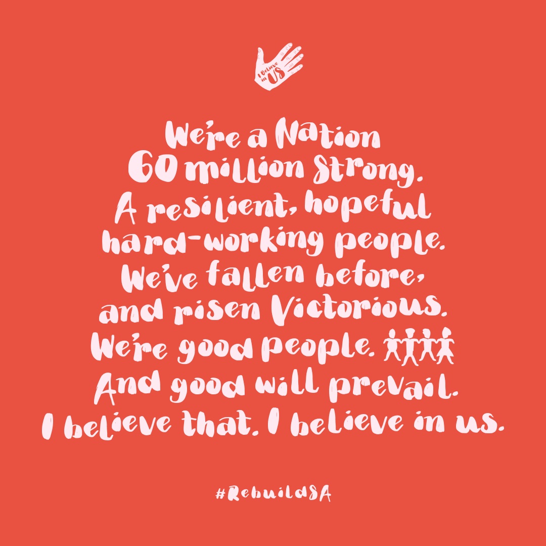 As the country takes stock of the devastating toll of the organised chaos and the accompanying large-scale looting in two provinces, South Africans from all walks of life have risen to the challenge to #RebuildSA. Creative Group of Companies M&C Saatchi Group South Africa, which has donated food for 200 families for a month, calls on citizens to rise to the challenge and help heal and change our country.