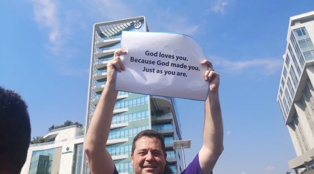 “Last Saturday, I joined a group of Christians who attended the Johannesburg Pride Parade. We didn’t protest against it – in fact, we did the opposite. We held signs showing our support of the LGBTQI community, and apologising for the way the church has treated them in the past.