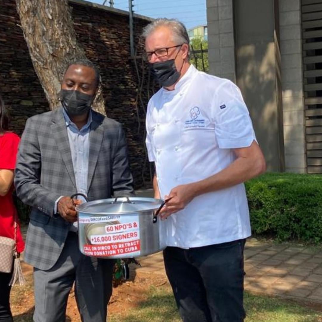 “A petition by 60 NGOs with 16,778 signatures was handed over to the Department of International Relations and Cooperation, SA this morning to halt the donation of R50m to Cuba for hunger relief. We are calling on DIRCO to help us ensure Government focuses their attention on addressing the problem of our own country.” – Chefs with Compassion