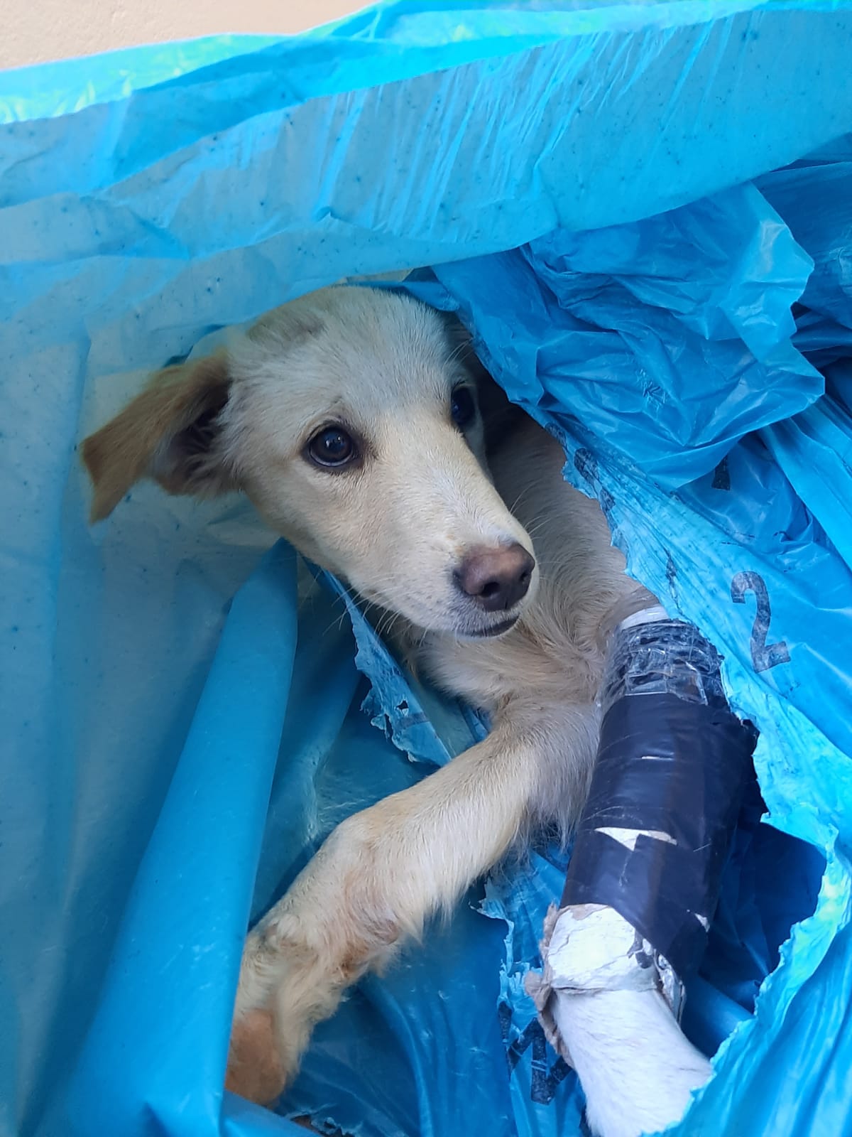 “They suspected that she had a broken leg so before finding something to carry her in they fitted a crude splint made from what appears to be a disposable nappy and duct tape to her injured leg.