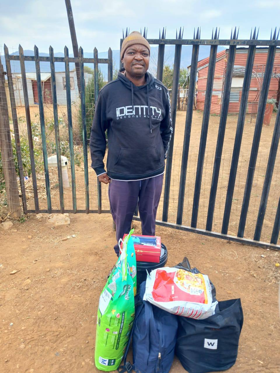 Mielie meal, potatoes, pasta, soya mince, soup, noodles, instant porridge for the youngest child, long-life milk, tea, coffee and sugar all go a long way. Comfort items like biscuits or chips are also welcome.