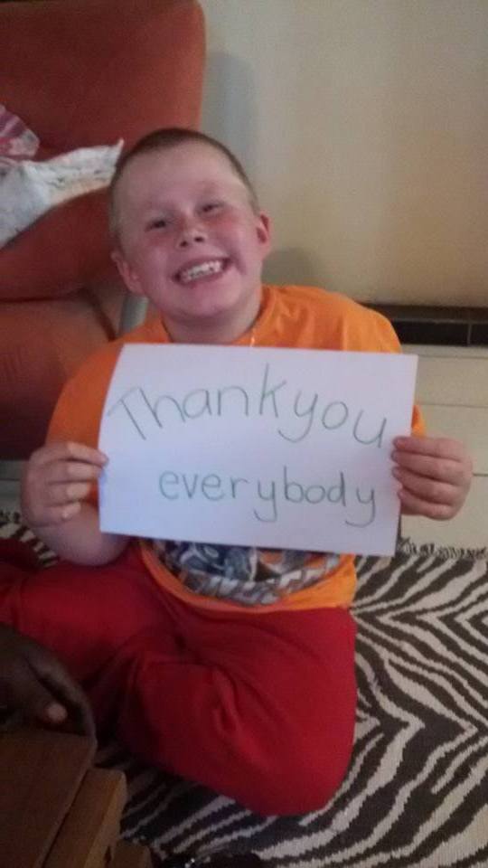 So to you all, you have just made a huge difference in not only a little boy, but to a family. May you all be blessed in return.”