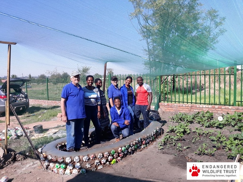 The Endangered Wildlife Trust’s ‘Guardians of the Future’ team visited the Itireleng Primary School to build a food garden using 200 EcoBricks.