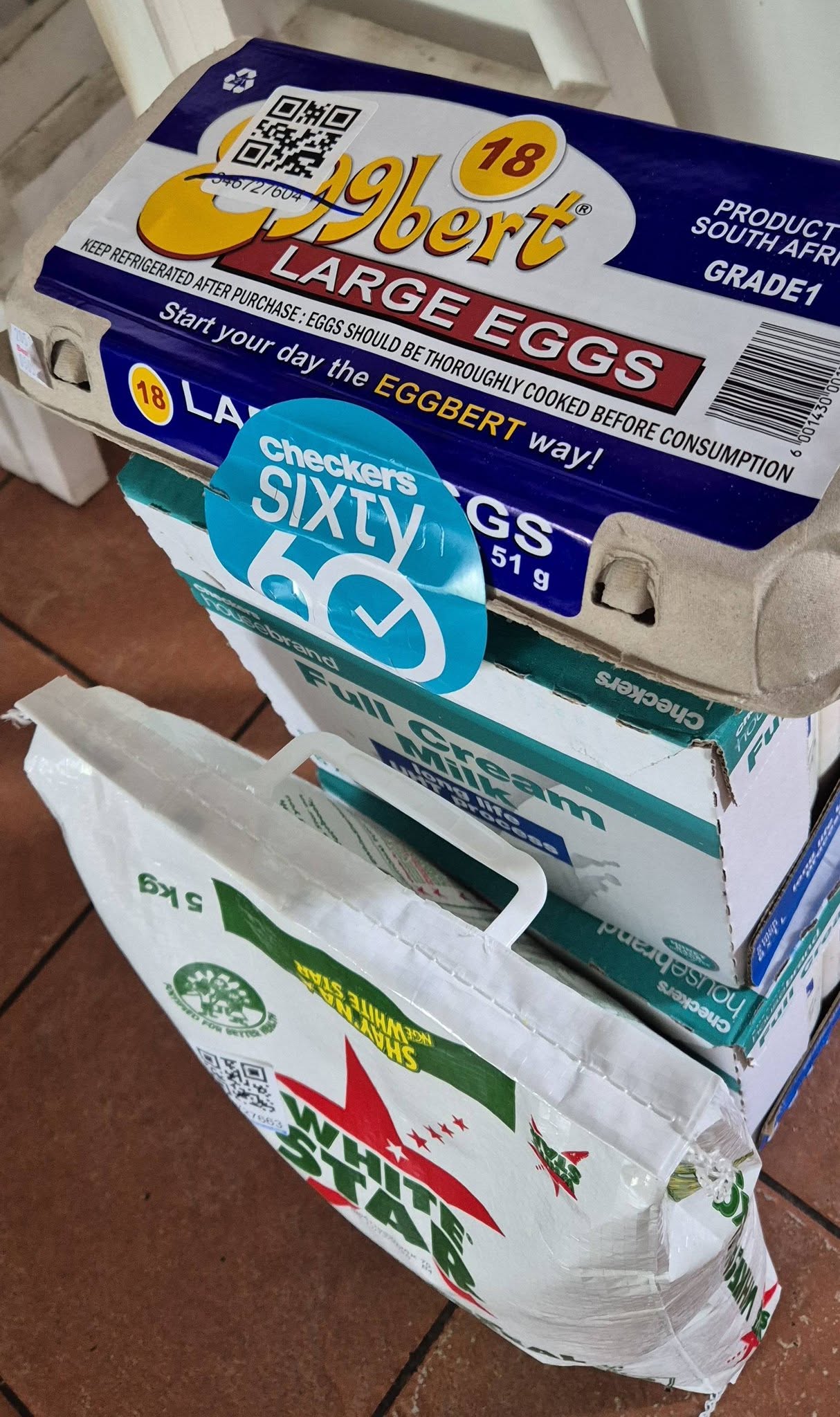 Within less than a day, grocery donations poured in from supporters moved to help. Rice, mielie meal, milk, eggs, cereal, tinned foods, bread, vegetables, and much more were bought and delivered through the generosity of compassionate South Africans who chose to stop scrolling, read about a hardworking mother’s plight, listen to their inner calling to help, and act.