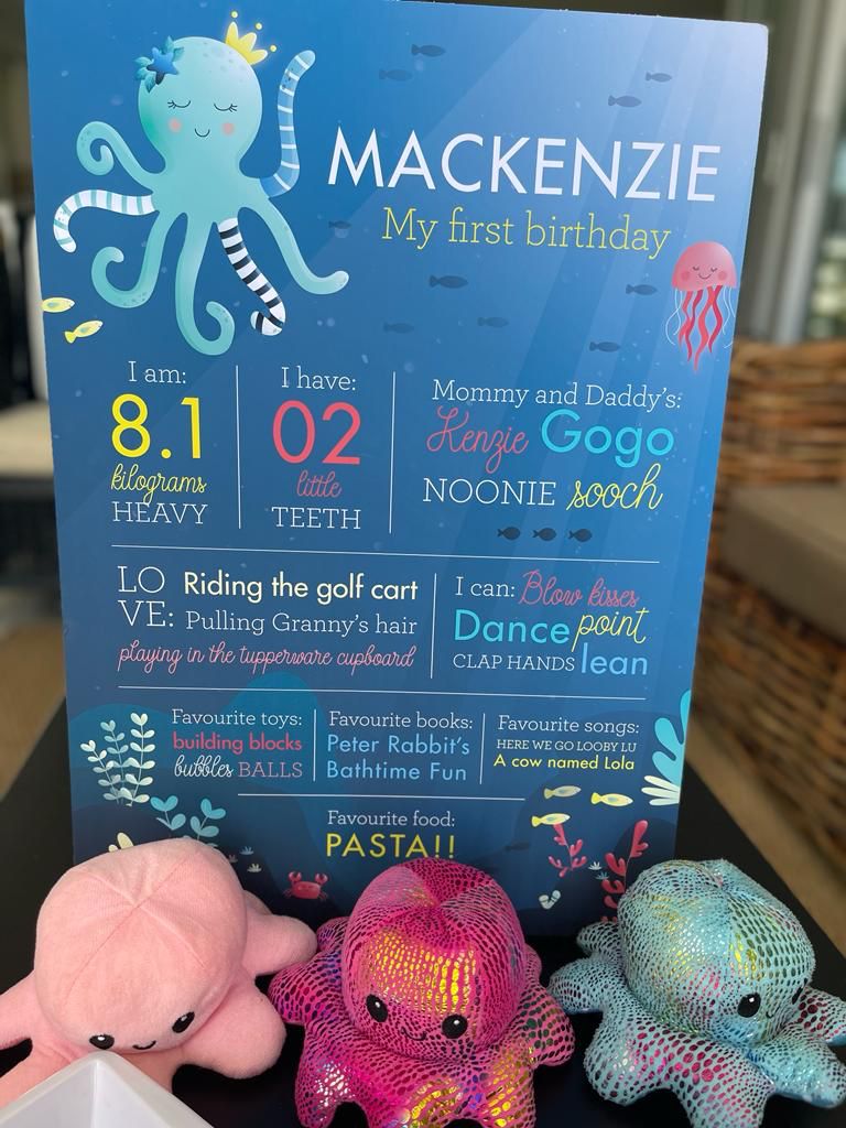 Today she is with her family. Mom Megan, dad Bronson and granny are all with her in isolation today; her uncle and grandpa will be celebrating from afar, so as to keep her safe. The isolation doesn’t mean they are not planning on having a big party to celebrate Mack’s massive first year. Her aunty Nikita shared some sneak-peak photos of all her Mighty Mack birthday spoils. Take a look at some of her party treats below.