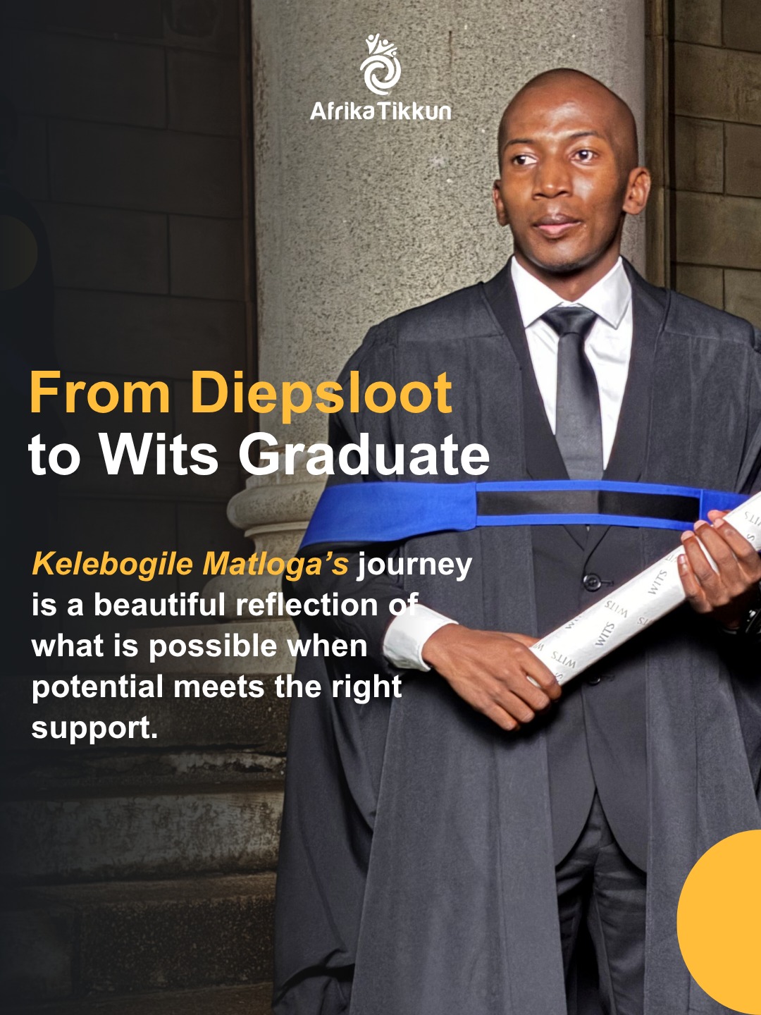 “Today, Kelebogile celebrates a significant milestone, graduating from Wits and stepping confidently into his professional future,” Afrika Tikkun shares with pride.