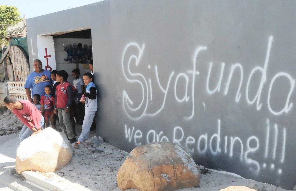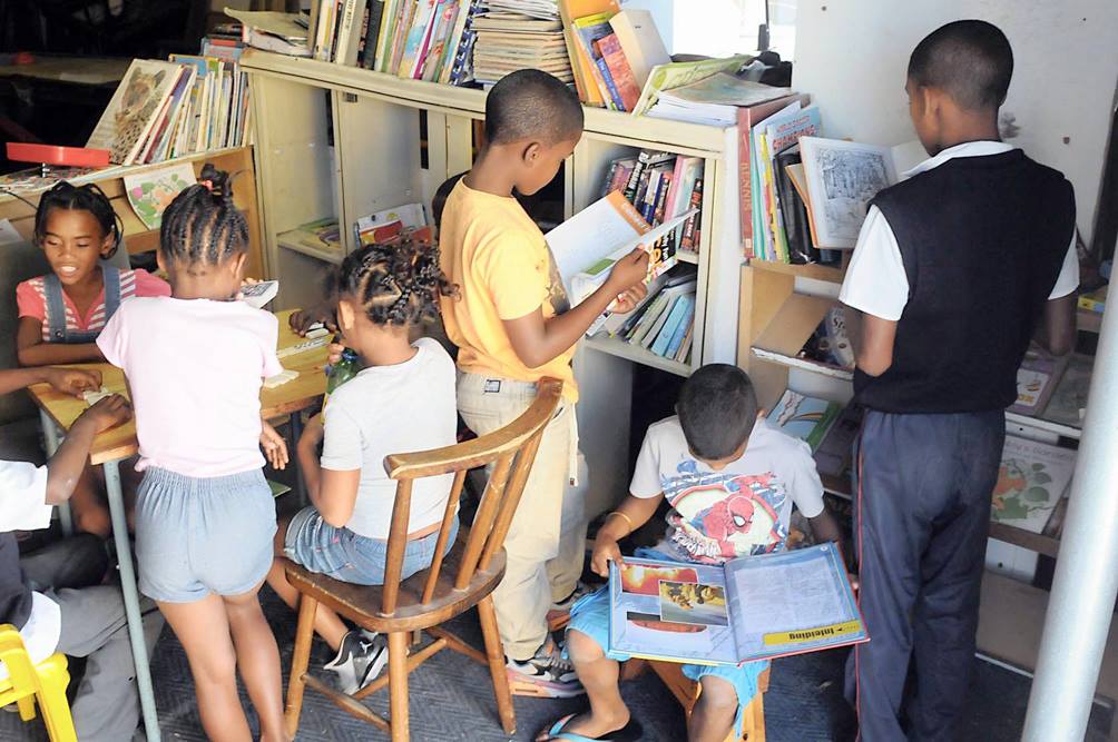 An 11-year-old boy says he enjoys the library: “Sometimes we play games and Uncle John gives us soup and fruit. Dit is lekker om te lees.”