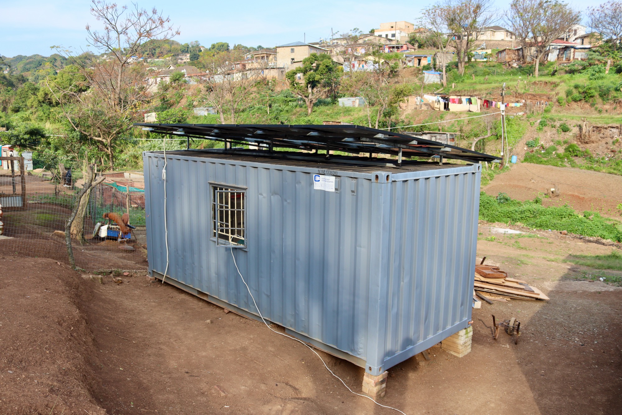In eKhenana, at Cato Manor, a communal electricity hub and library was set up in a container.