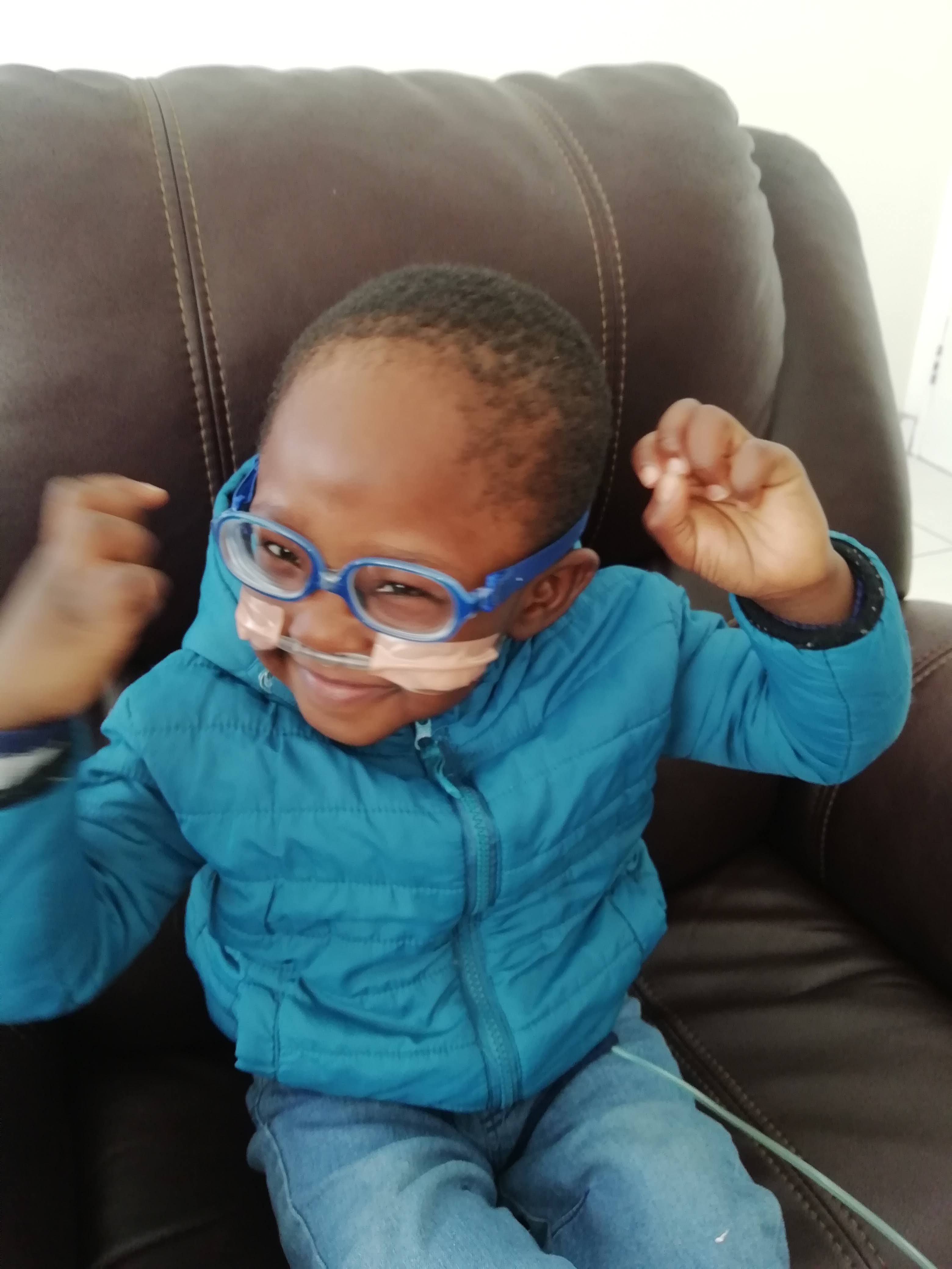 Lwanele is a little warrior who was born with multiple birth defects but continues to survive and thrive! Having spent his first two birthdays in hospital, Lwanele was able to spend his third birthday at home this year. He is stronger and growing fast but he continues to need constant medical care, chronic medication and a selection of physiotherapy sessions to address various issues.