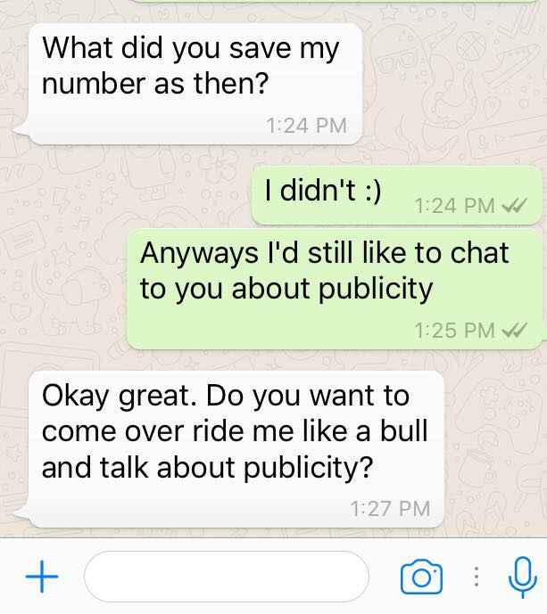 You can say what you want about how I got to wherever I am, but I’ve never had to say yes to this type of message and neither should anyone out there.