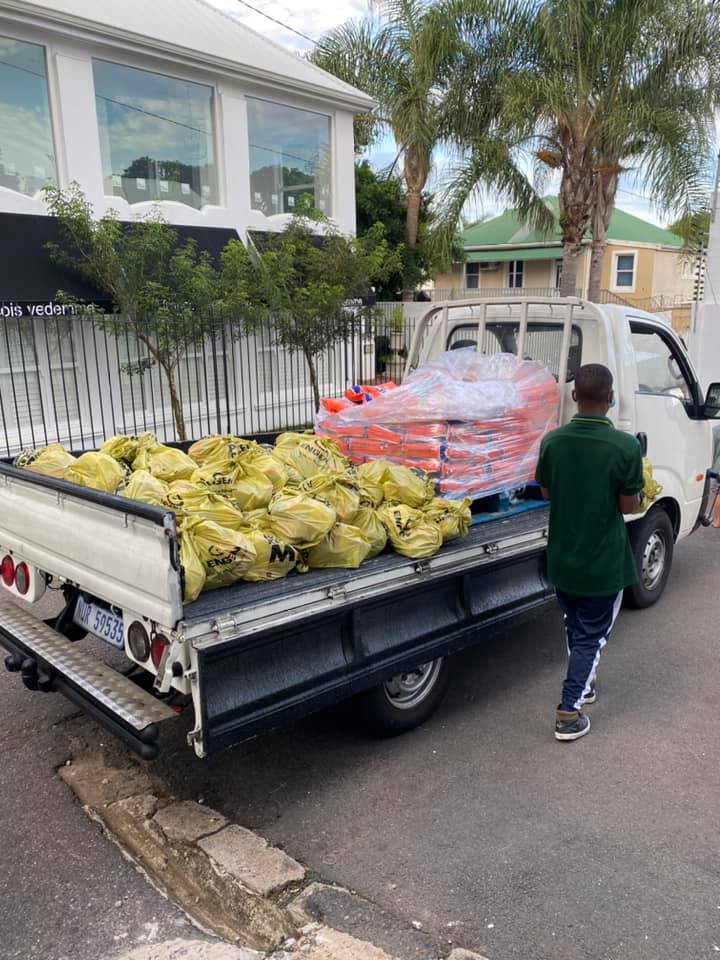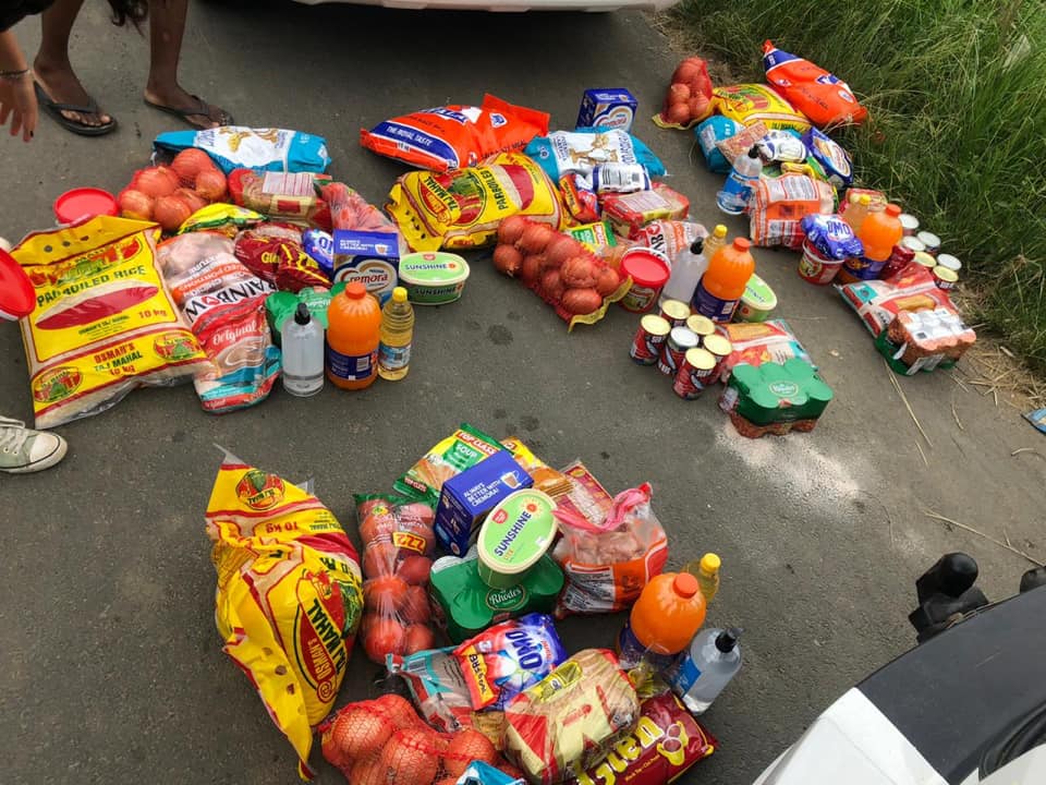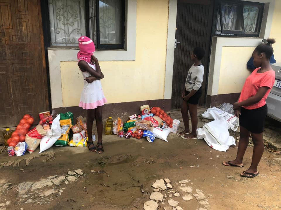“All of the children got packs with staples like rice, maize meal, tins: beans and fish, potatoes, onions, tomatoes, oil, sugar, teabags, chicken meat, instant porridge, powder milk, powder soap, curry soups, bread, rama, peanut butter, sanitiser and Oros.