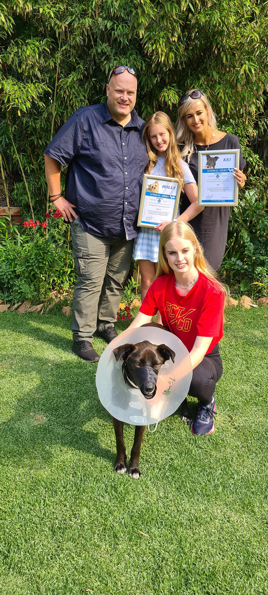 “Today was the day our hero dog, Kei was presented with her bravery award for saving the lives of her family as well as a posthumous bravery award for Holly who died while attacking the intruders.