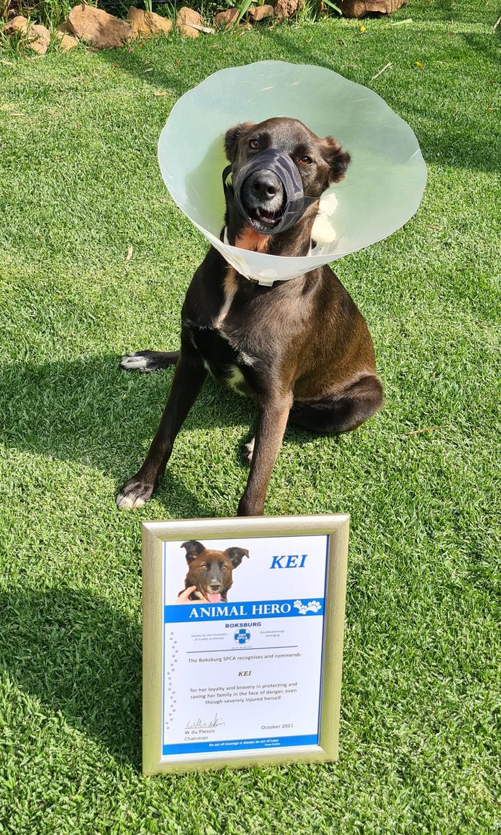 The Boksburg SPCA visited Kei yesterday to hand over her bravery award and to wish her well before her big surgery takes place next week.