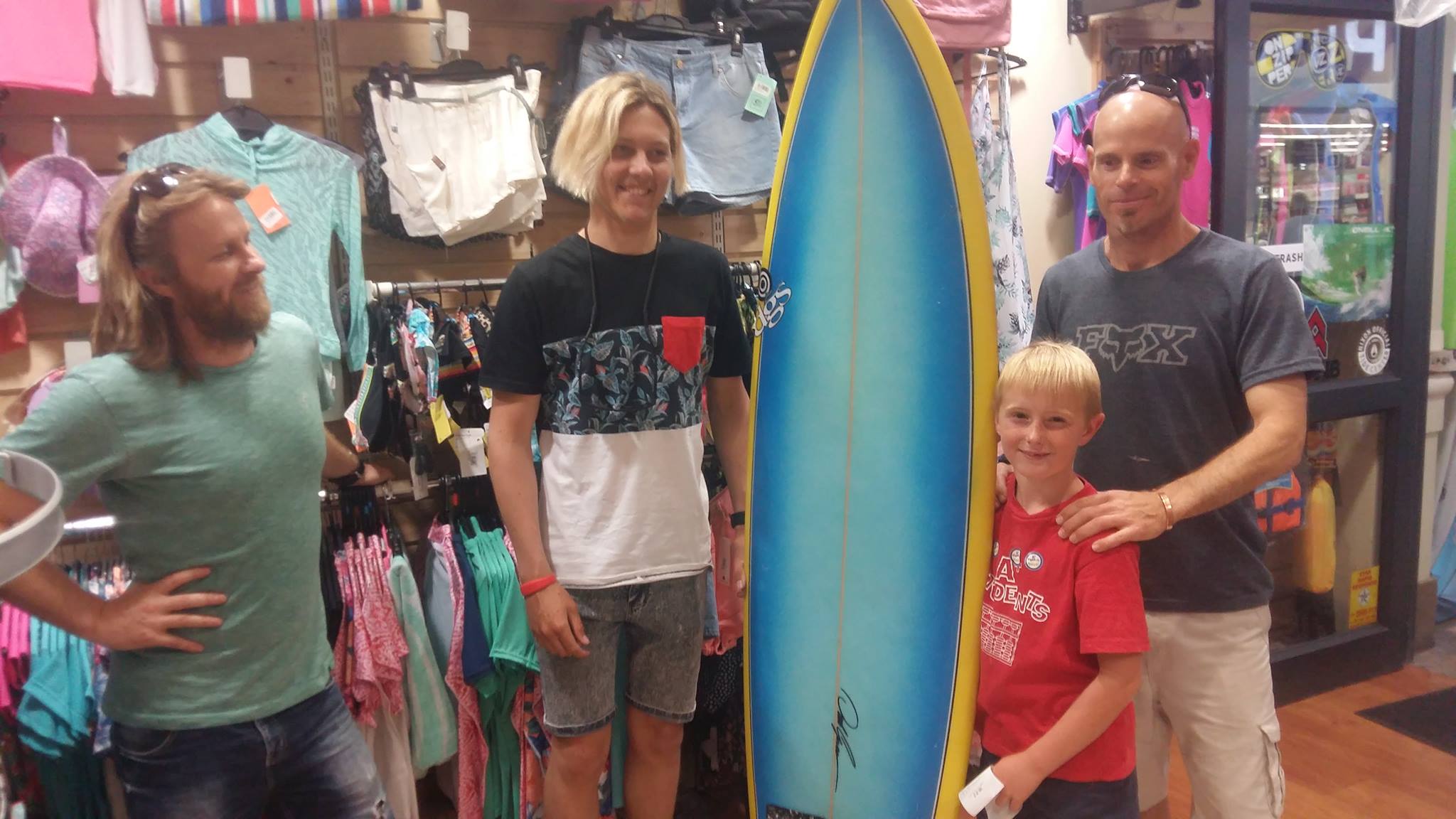 “I honour the 3 surfers for making a little boy so happy, and I honour God for blessing us with 3 wonderful people who sold my son his board. As a mom, I couldn’t help but wipe away a few tears at the kindness these awesome men showed my son today. Thank you so much Sunset Surf Surfers! It’s great to know that we live in such a caring community who help each other.” – Kristyn Smit Britz