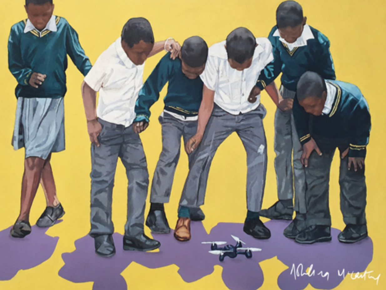 She uses proceeds from her works to channel back into Ngifundela Ukuphila, like ‘First Flight’ (a piece that captures children watching a drone take off for the first time). These funds support the robotics and coding programme.