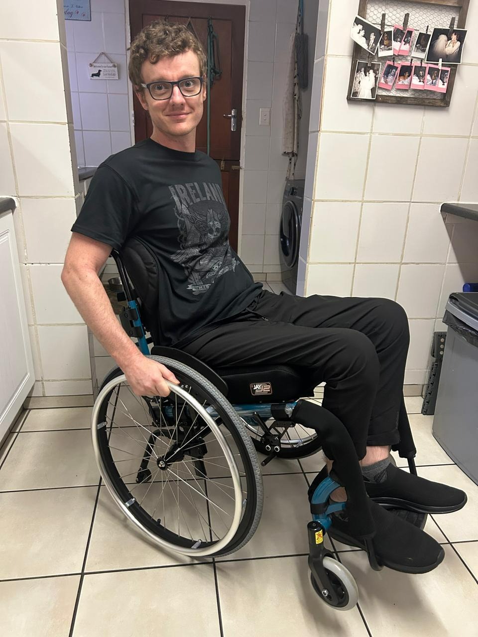 Tinus received emergency gold-standard treatment in the hospital. He was then transferred to a specialised spinal rehabilitation facility where he spent six weeks learning basic tasks like dressing himself, transferring safely into a wheelchair, and adapting to a new way of living.